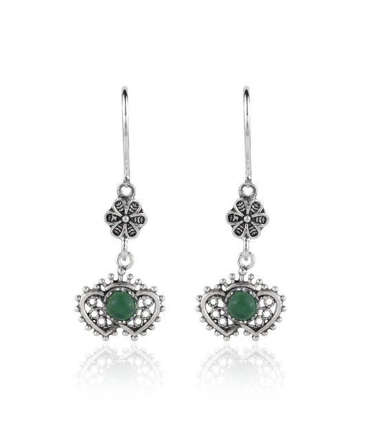 Sterling Silver Filigree Art Heart Shaped Gemstone Women Dangle Earrings