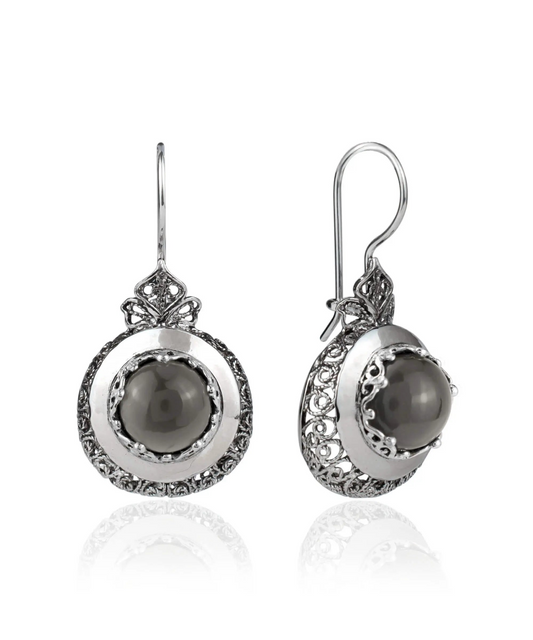 Sterling Silver Filigree Art Gray Moonstone Gemstone Women Drop Earrings