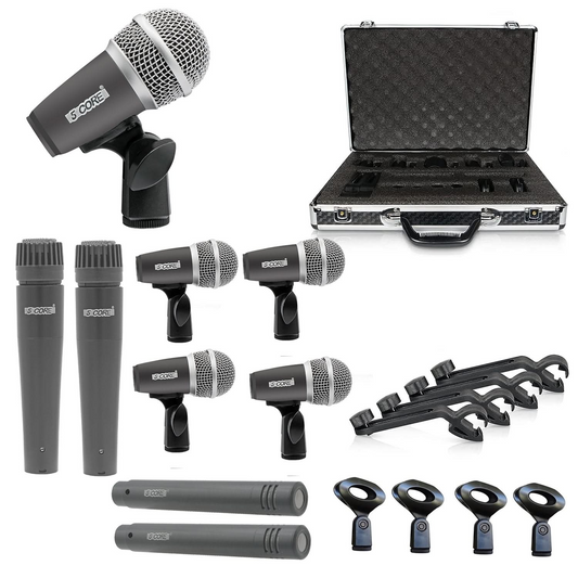 5Core Drum Mic Kit 9 Pcs Kick BassTom Snare Dynamic Mics Instrument Microphone Set GREY