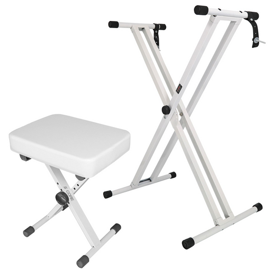 5Core Keyboard Stand Double X Style Adjustable Piano Riser + Keyboard Piano Bench WHITE