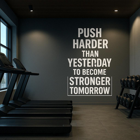 Gym Motivation Wall Decal | Push Harder Than Yesterday Quote | Workout Room Vinyl Sticker | Fitness Wall Art | Stronger Tomorrow Decor