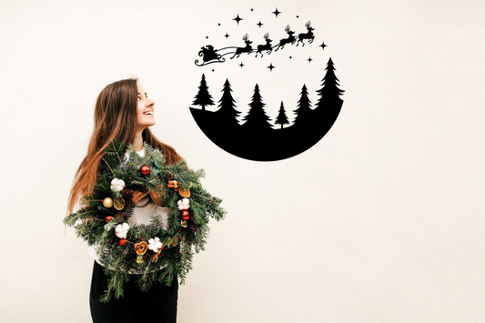Circular Santa Sleigh and Deers Wall Decal - Christmas Silhouette Window Stickers