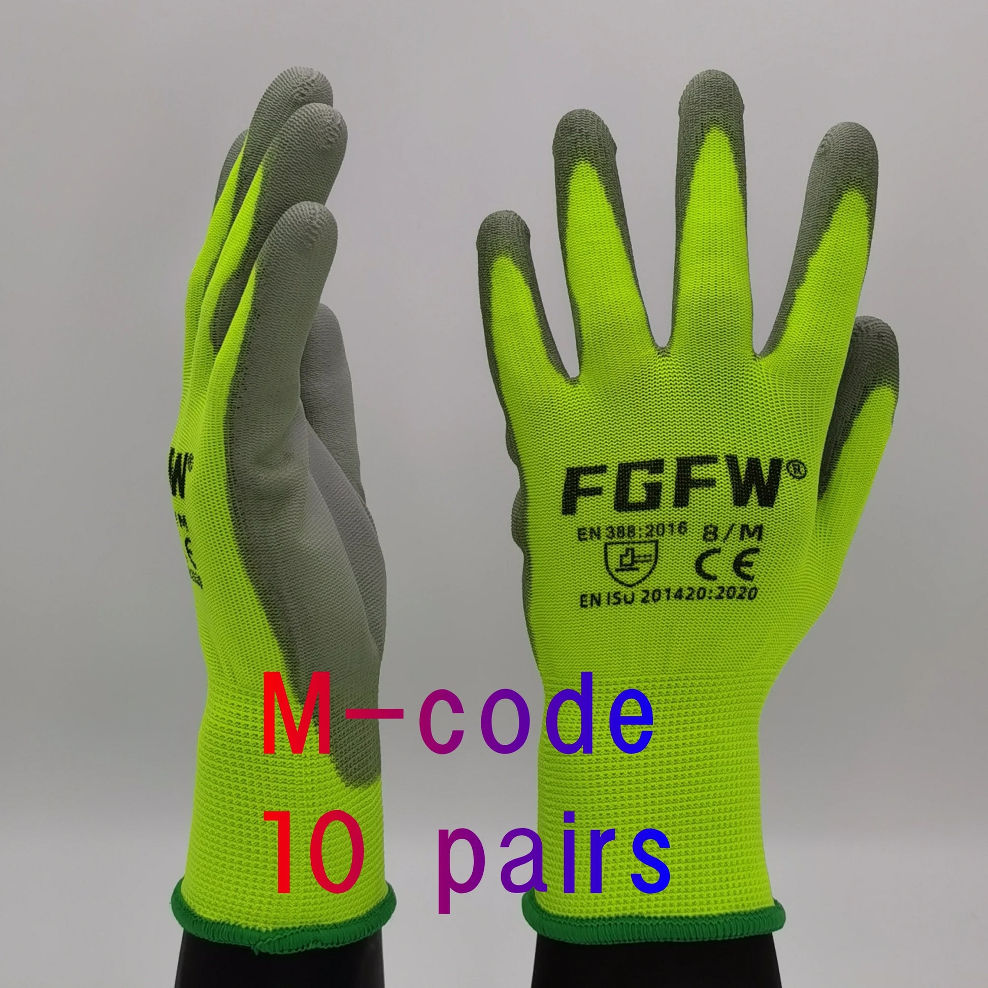 10 Pairs PU Coated Work Gloves - Lightweight, Durable Safety Gloves EN 388/ISO20471 Certified, Sizes S/M/L/XL