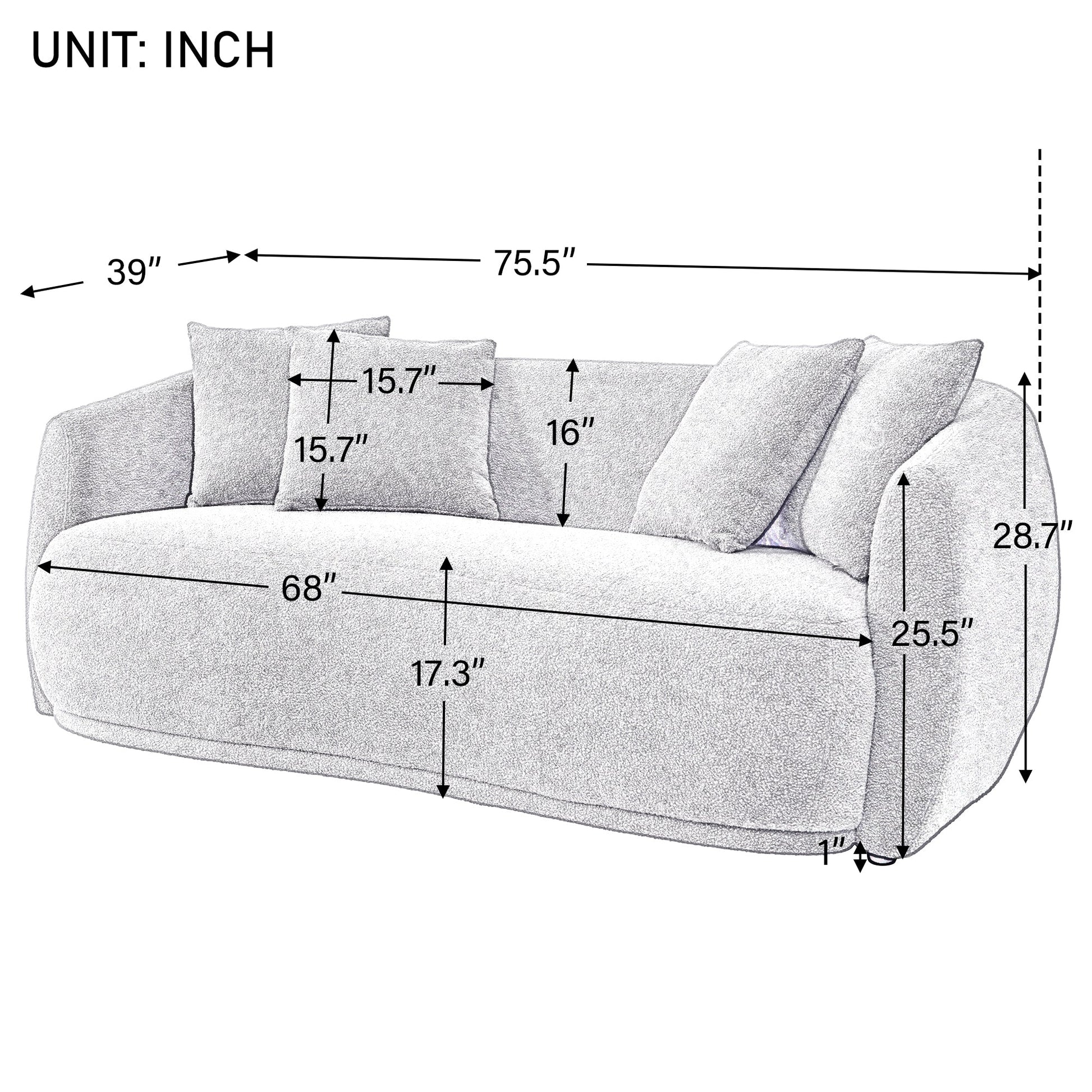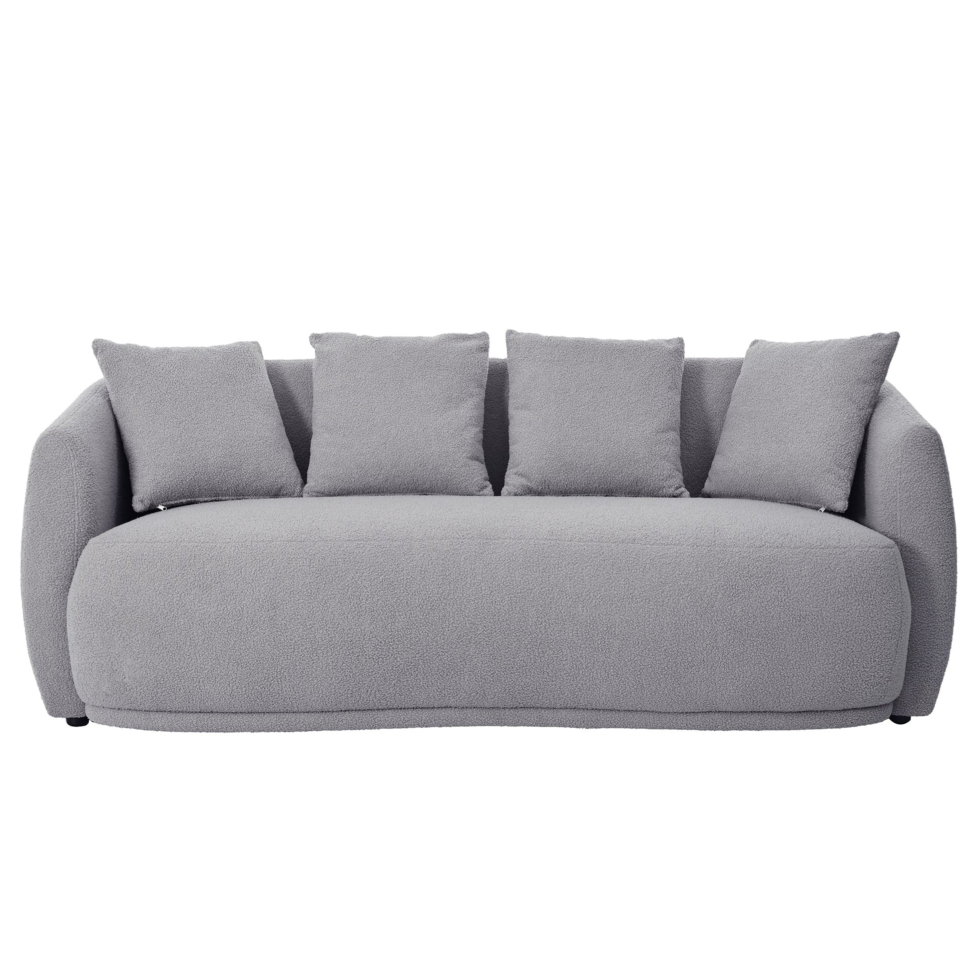 - Plush Comfort with Throw Pillows: Sink into a world of unparalleled comfort as you envelop yourself in the soft and luxurious embrace of our sheepskin fabric. This fabric not only looks inviting but also feels incredibly cozy against your skin. To enhance your comfort further, we include four complementary throw pillows that not only provide additional cushioning but also accentuate the style of the sofa.