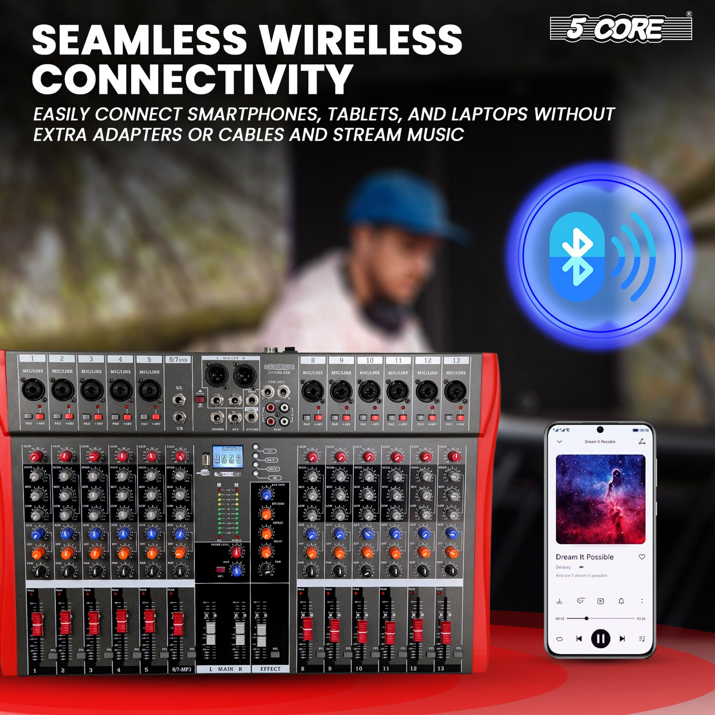 5 Core Audio Mixer 12 Channel DJ Equipment with Bluetooth USB Sound Board Console