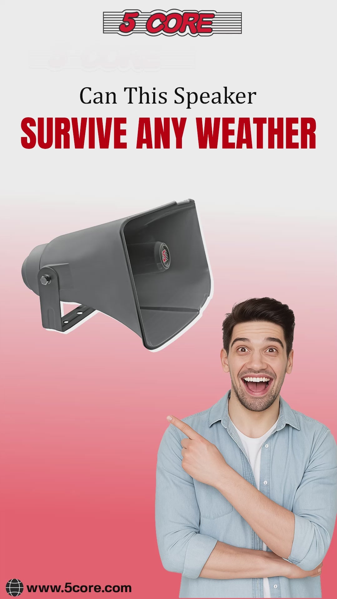 【All-Weather Loudspeaker】 Heavy-duty ABS construction withstands harsh climates, making it perfect for outdoor use.