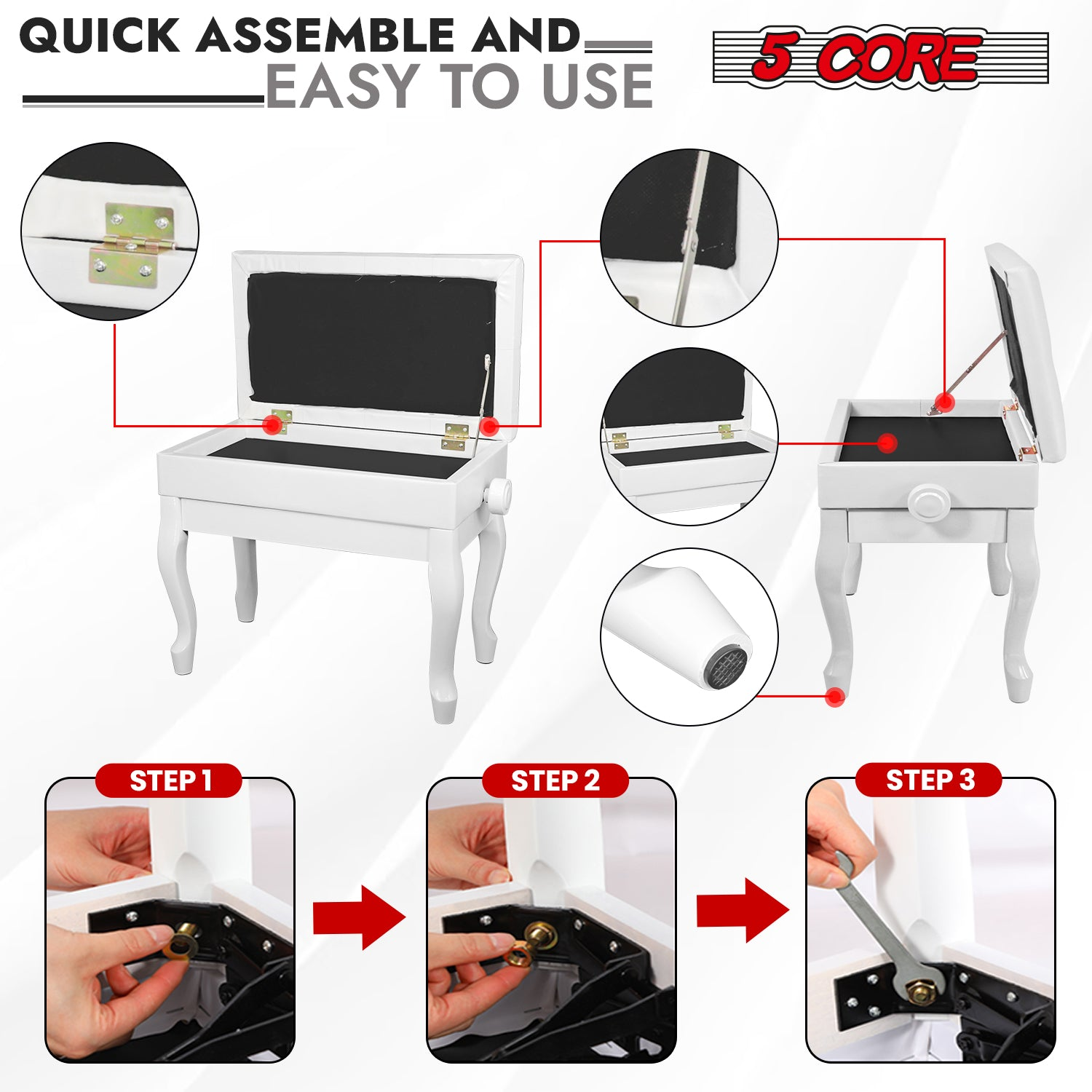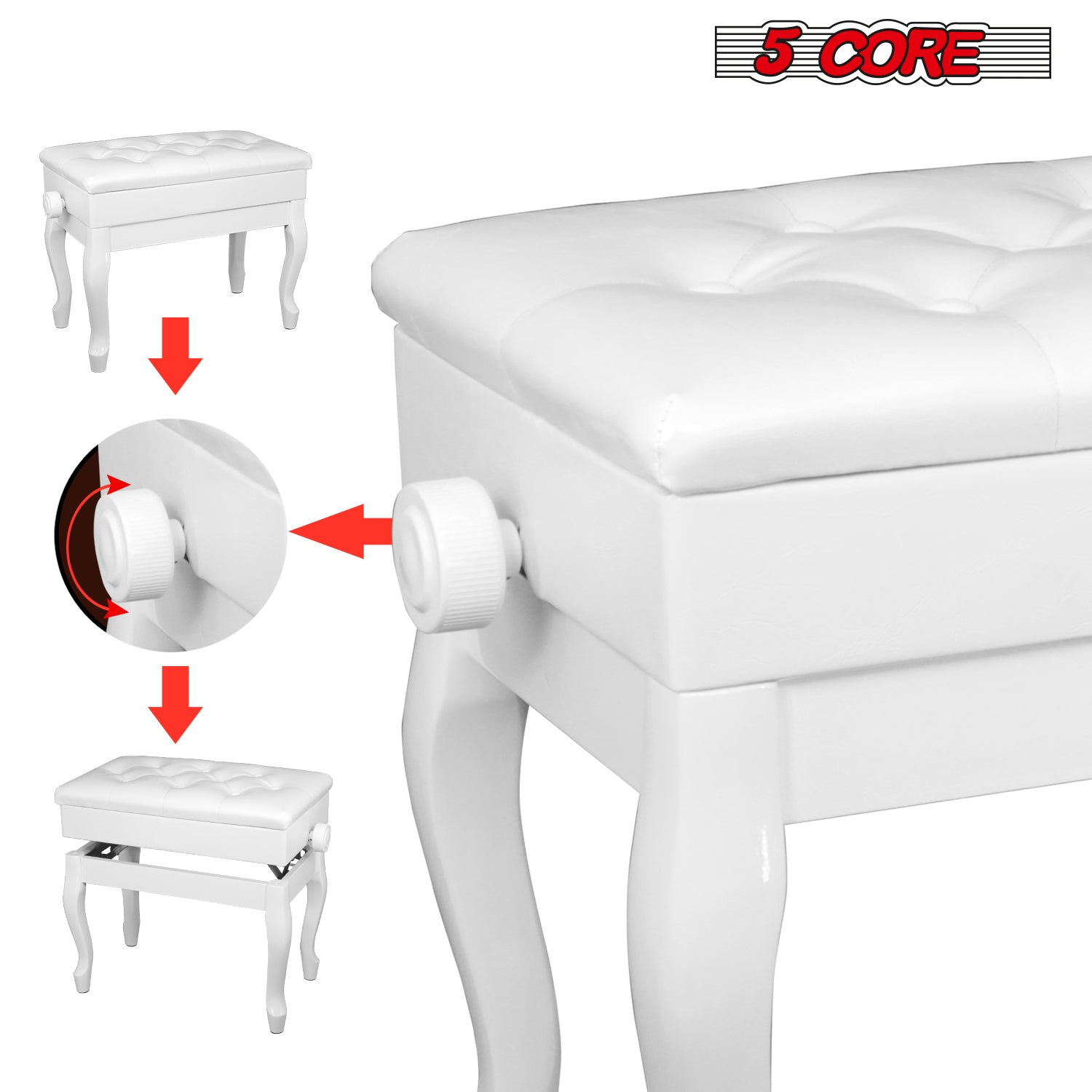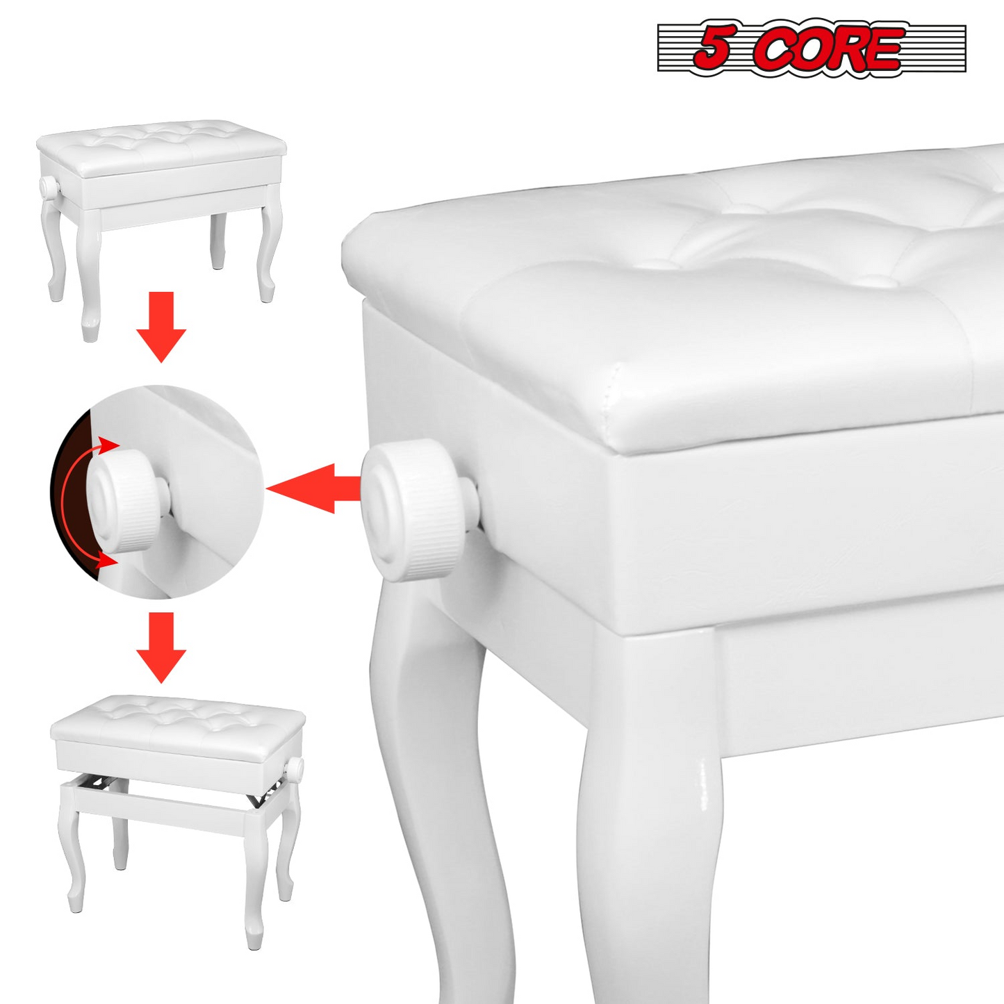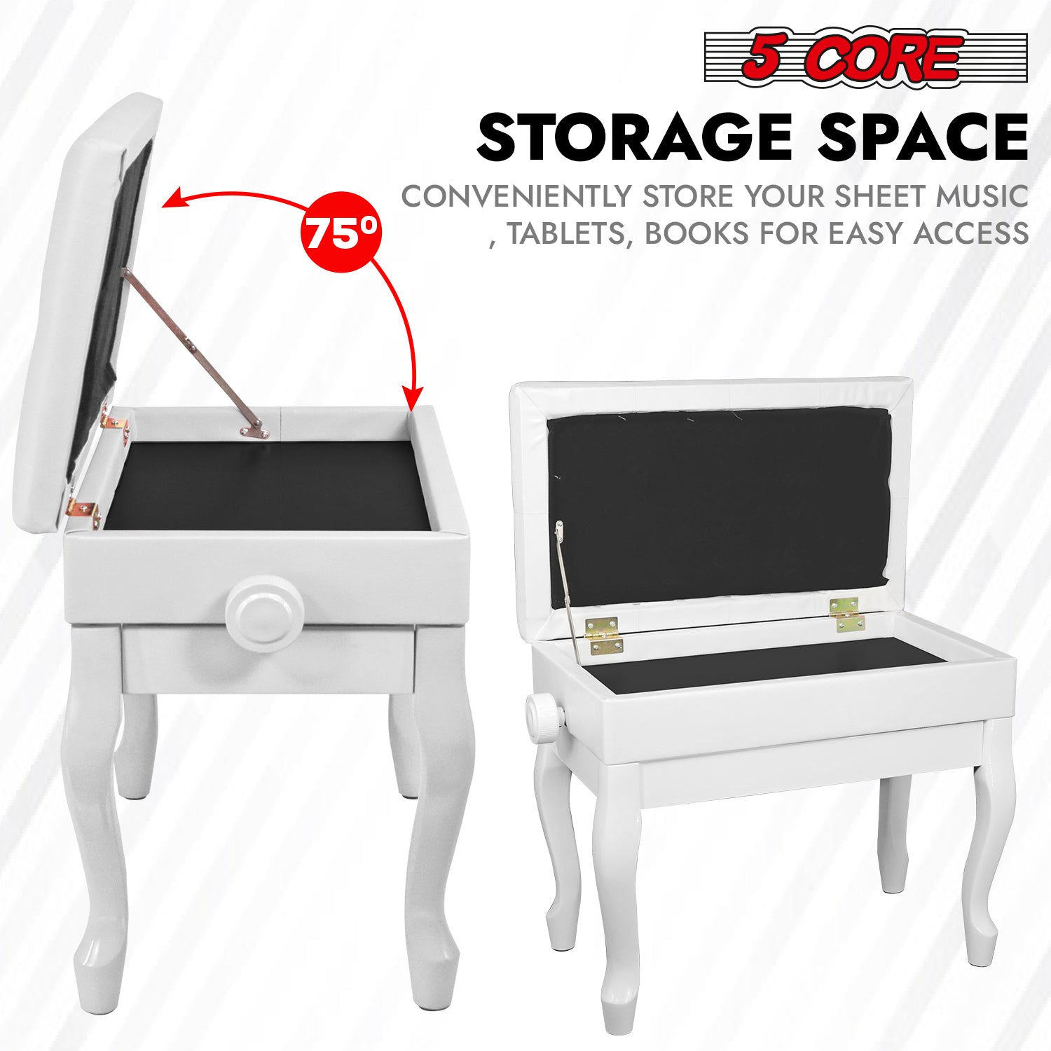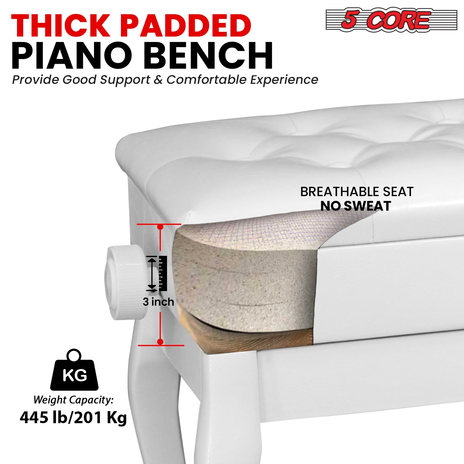 5 Core Piano Bench 3" Padded Cushioned Stool Wooden Heavy Duty Adjustable Musician Chair w Storage