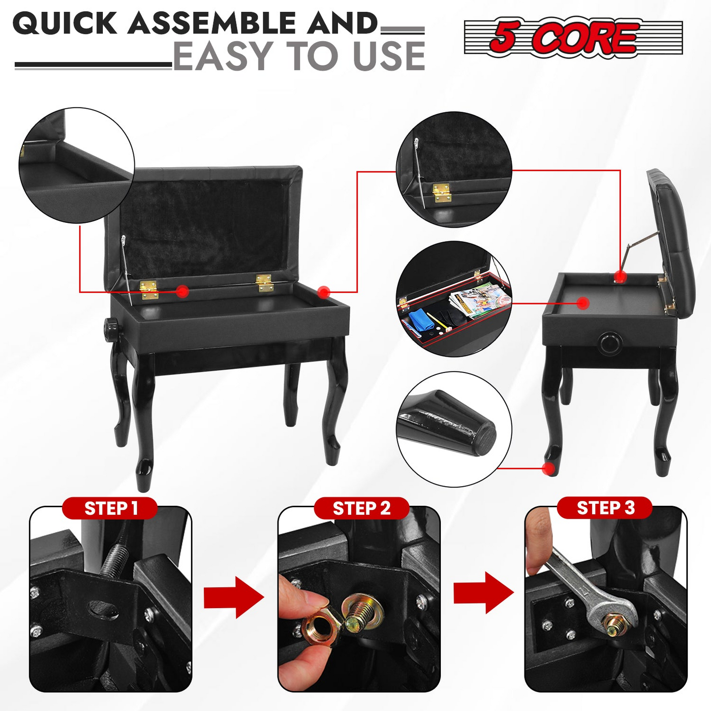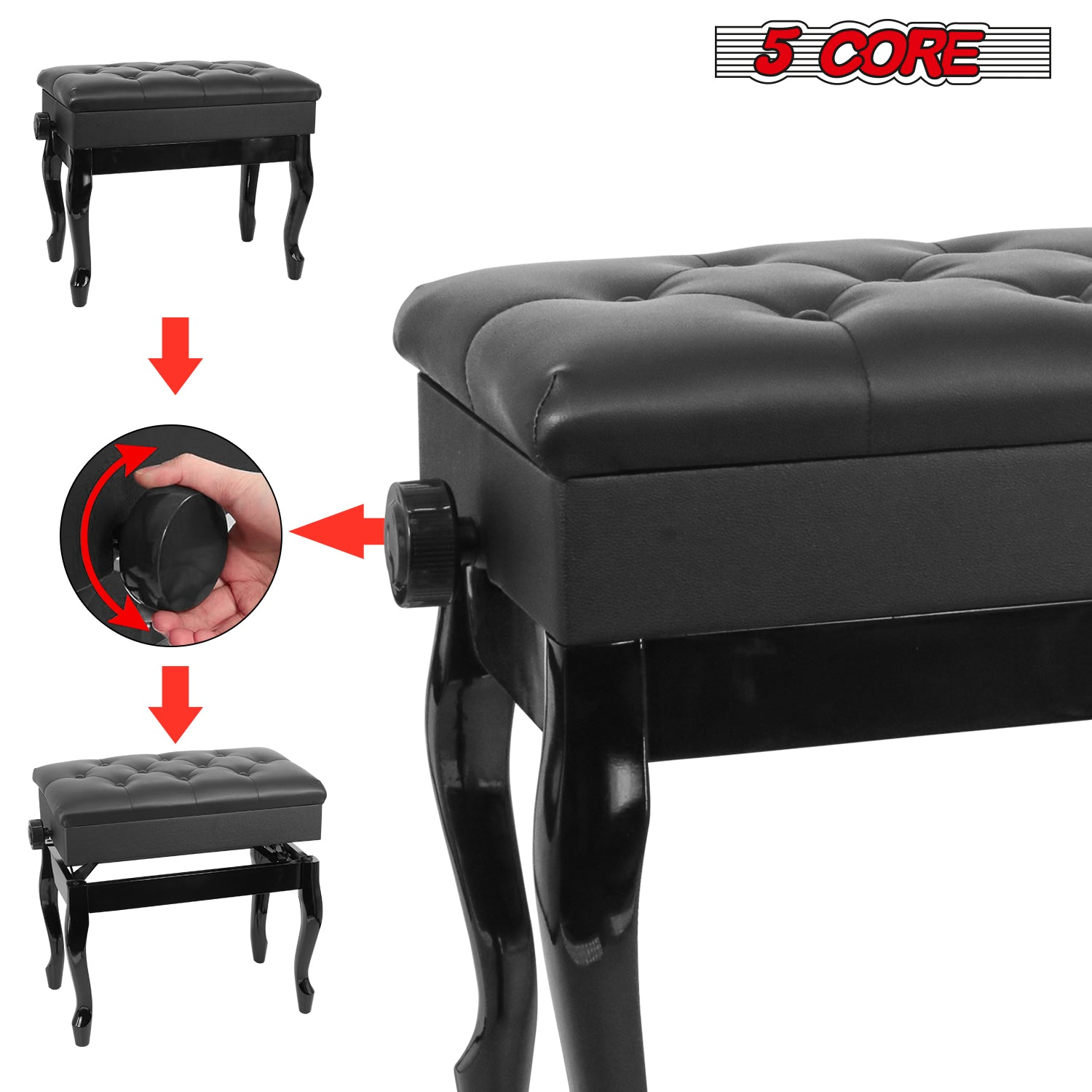 5 Core Piano Bench 3" Padded Cushioned Stool Wooden Heavy Duty Adjustable Musician Chair w Storage