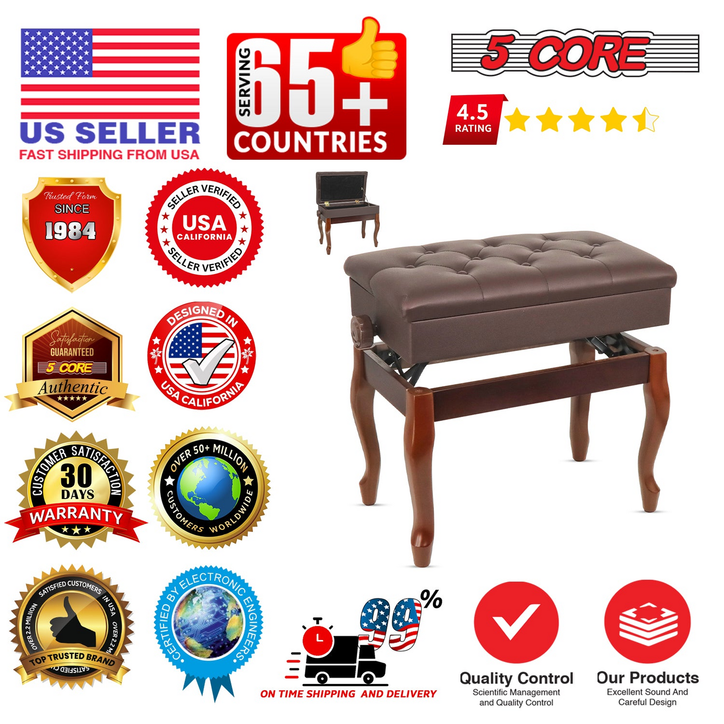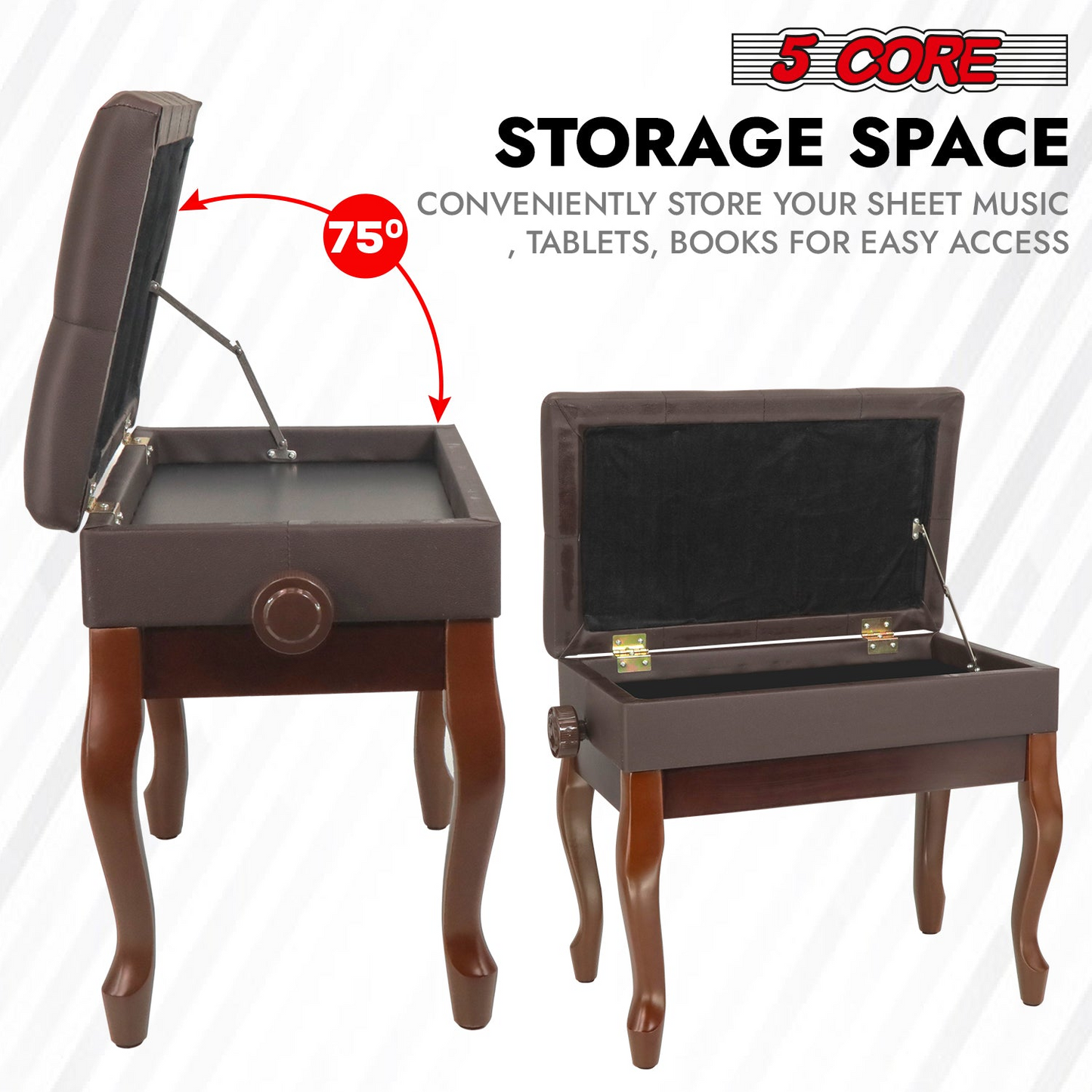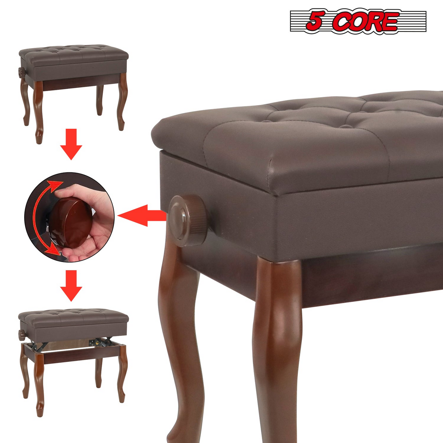 5 Core Piano Bench 3" Padded Cushioned Stool Wooden Heavy Duty Adjustable Musician Chair w Storage