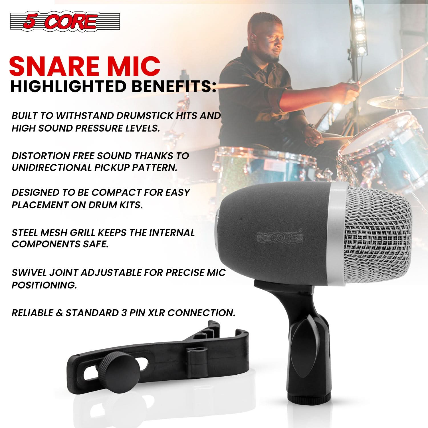 5 Core Snare Microphone XLR Wired Uni Directional Tom Drum and Other Musical Instrument Mic GRAY