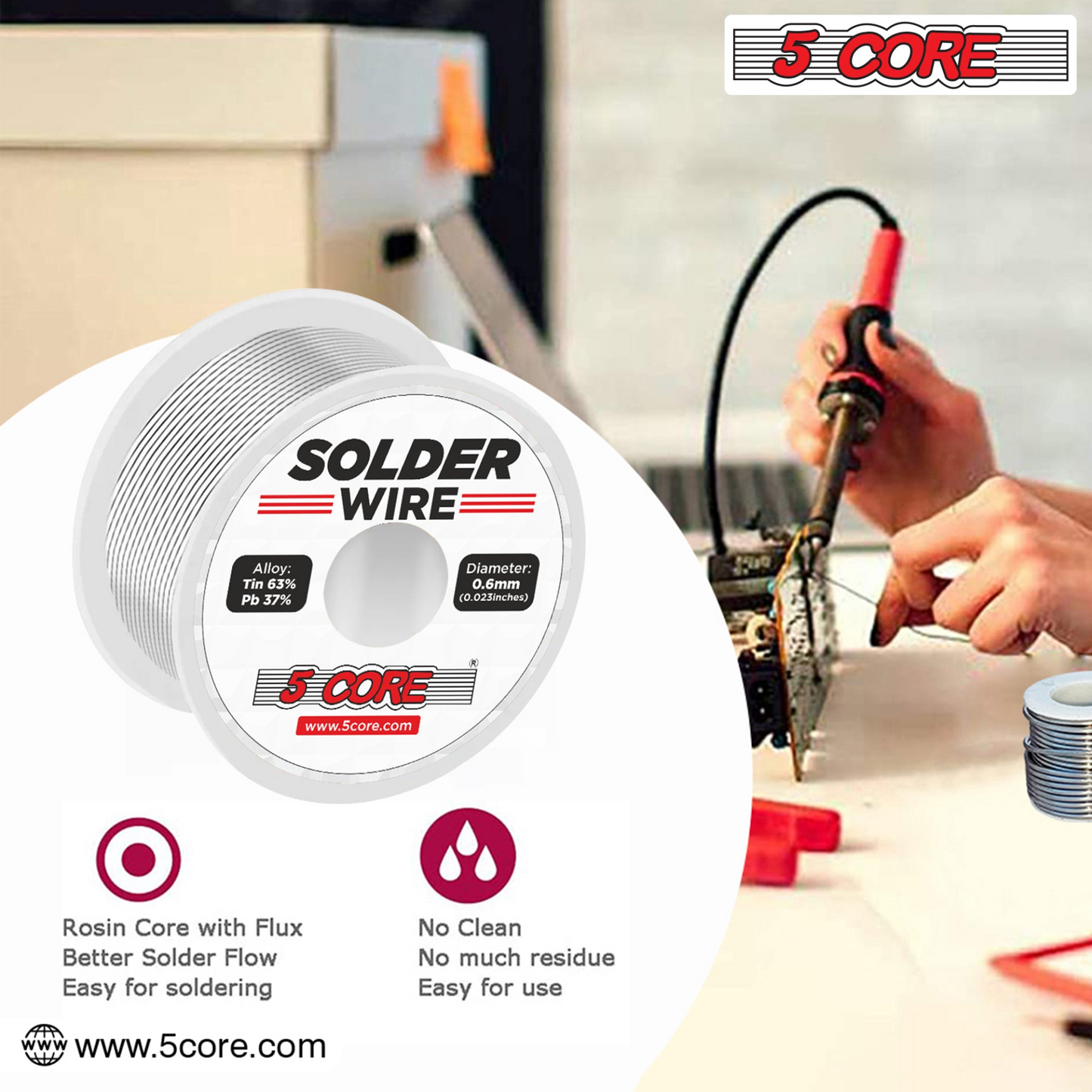 【Efficient Soldering】– Melting temperature range of 419°F to 428°F ensures shorter soldering times. Wire diameter: 0.6mm (0.023 inches).
