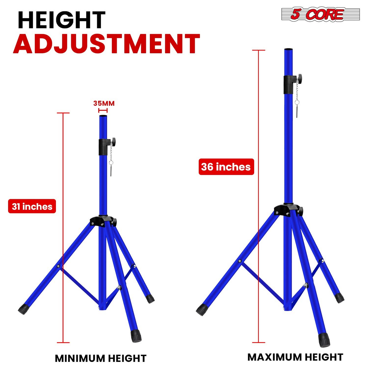 5 Core Speaker Stand Adjustable 31 to 36" PA DJ Tripod Stands Heavy Duty w 35mm Insert 132 Lbs