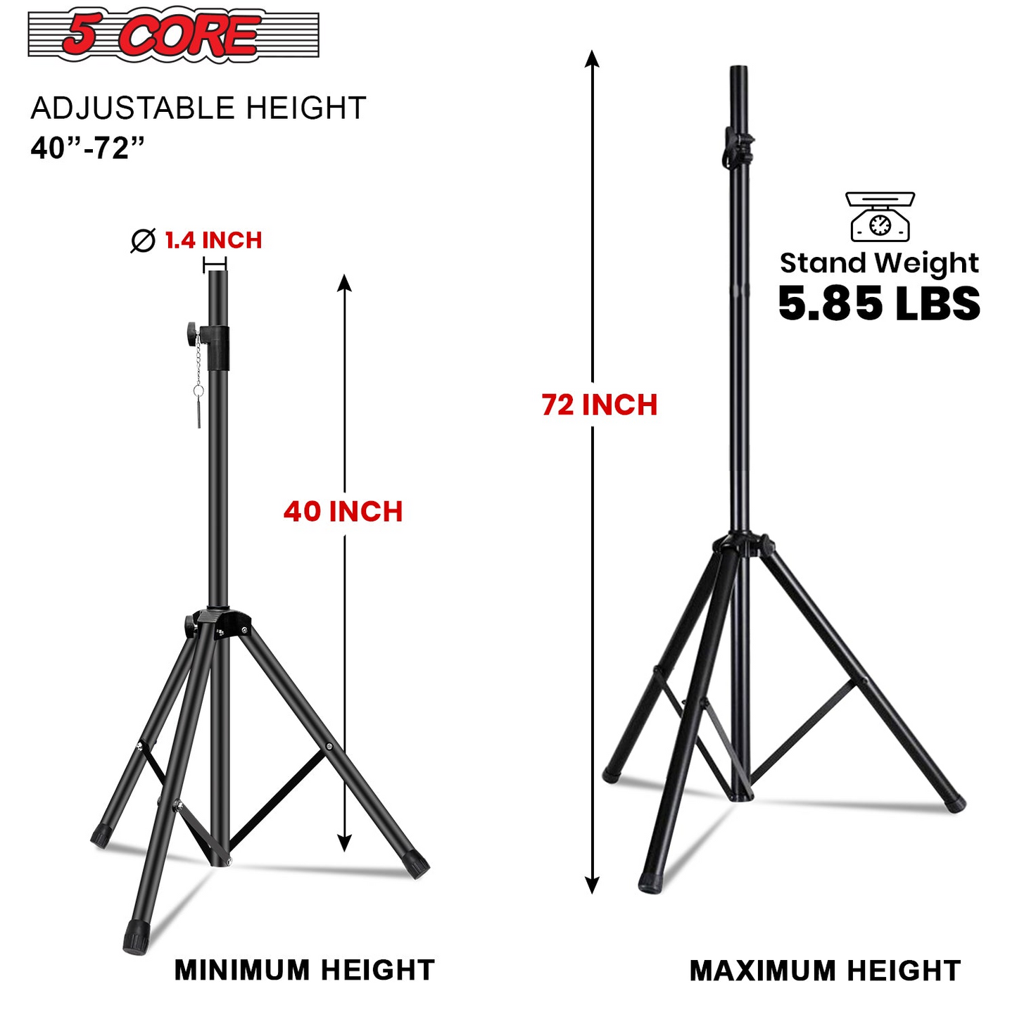 5 Core Speaker Stand Tripod Heavy Duty Adjustable Up to 72 Inch DJ Studio Monitor Stands Pole Mount Black