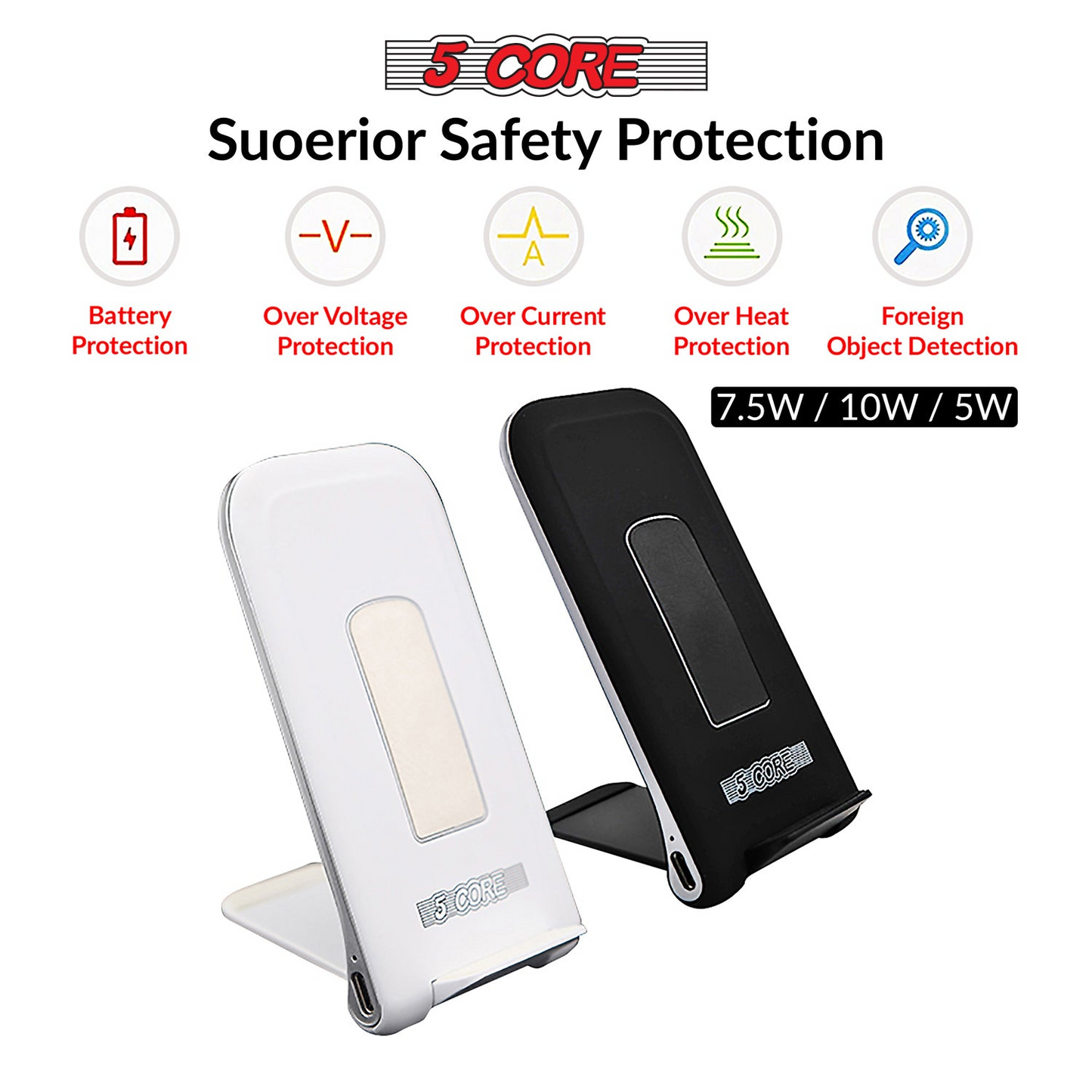Experience seamless charging with our wireless charger. Designed for efficiency, it offers versatile input options and delivers reliable wireless output up to 10W. With a charging distance of up to 6 mm, this wireless charging station ensures convenience and ease of use. Operating efficiently between -10 and 60 degrees Celsius, this charging dock is built to perform under various conditions. Achieve up to 73% charging efficiency and keep your devices powered up effortlessly. Elevate your charging experience using 5 Core Wireless Charging Stand. |