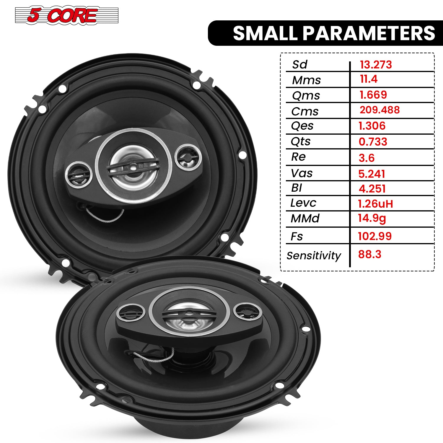 5Core 6” Car Speaker Pair 500W 4Ohm 2 Way Coaxial Speakers w Super Tweeter Universal Fit for Vehicle