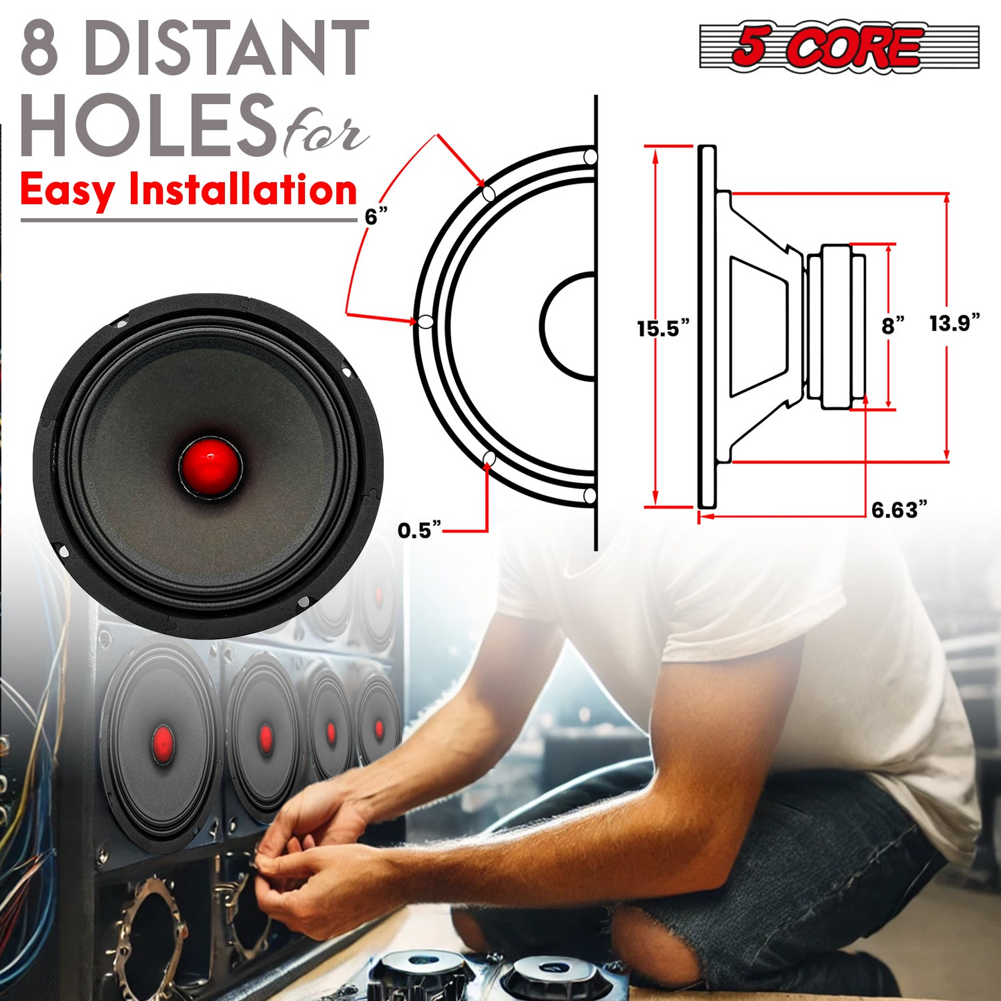5Core 8 Inch Midrange Door Speaker 500W Subwoofer w Aluminum Bullet 8Ω Sub Woofer 2 PCS