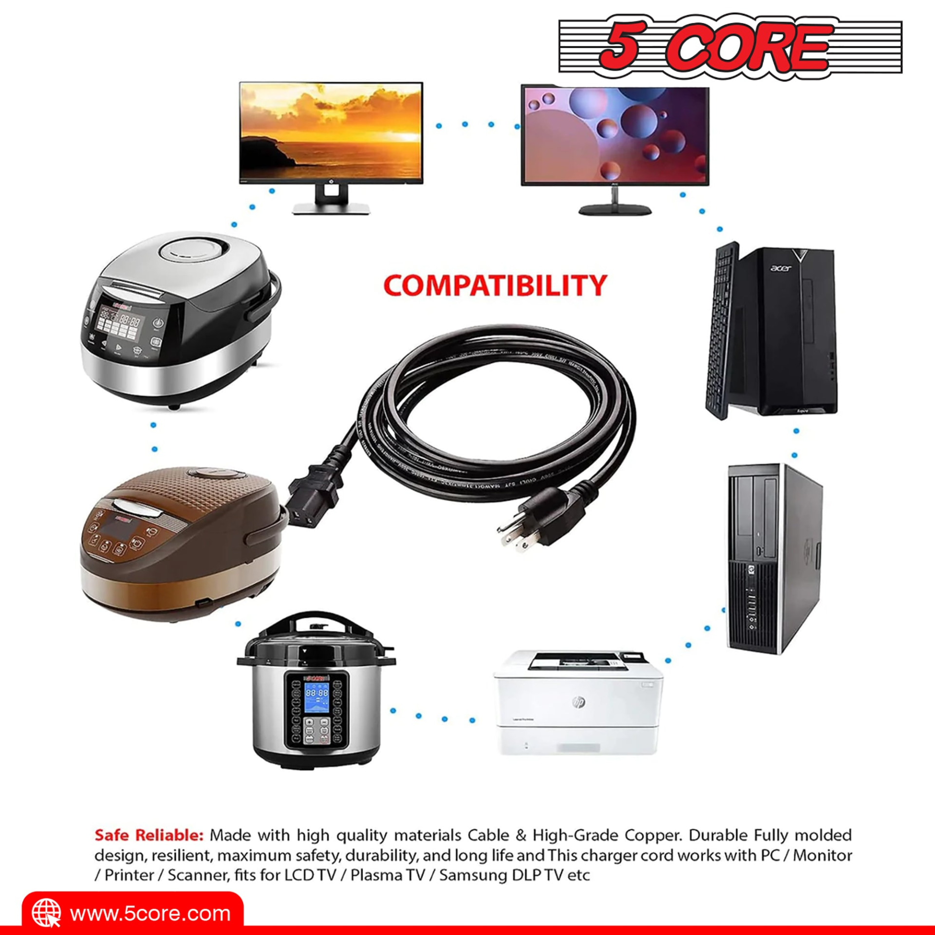 【Universal Power Cord】 A reliable replacement power supply cord compatible with computers, monitors, TVs, printers, and appliances. Functions as a PC power cord, TV power cord, monitor power cable, and more.
