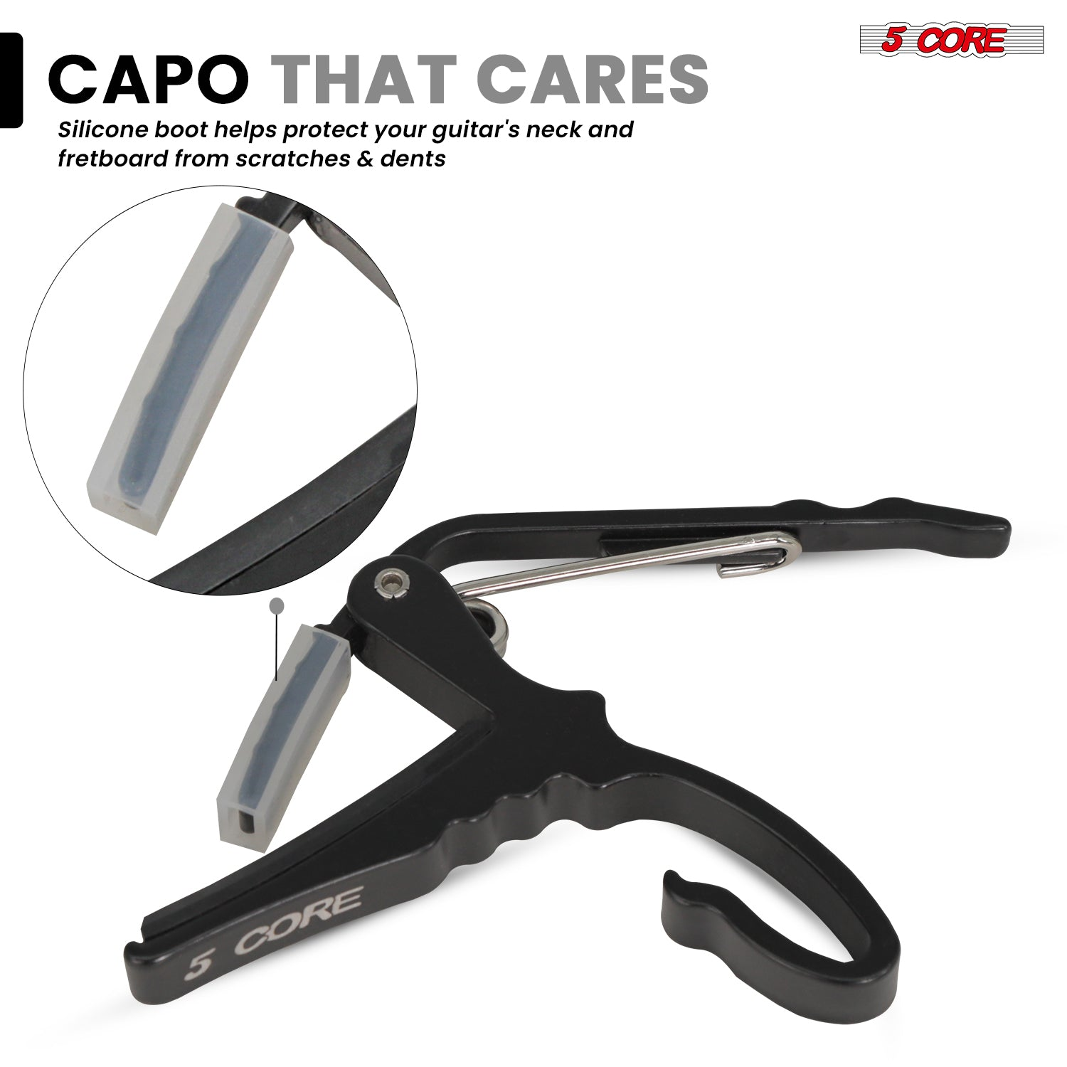5Core Capo Acoustic Electric Guitar String Clip + 6Pcs Guitar Picks Celluloid + Carry Bag