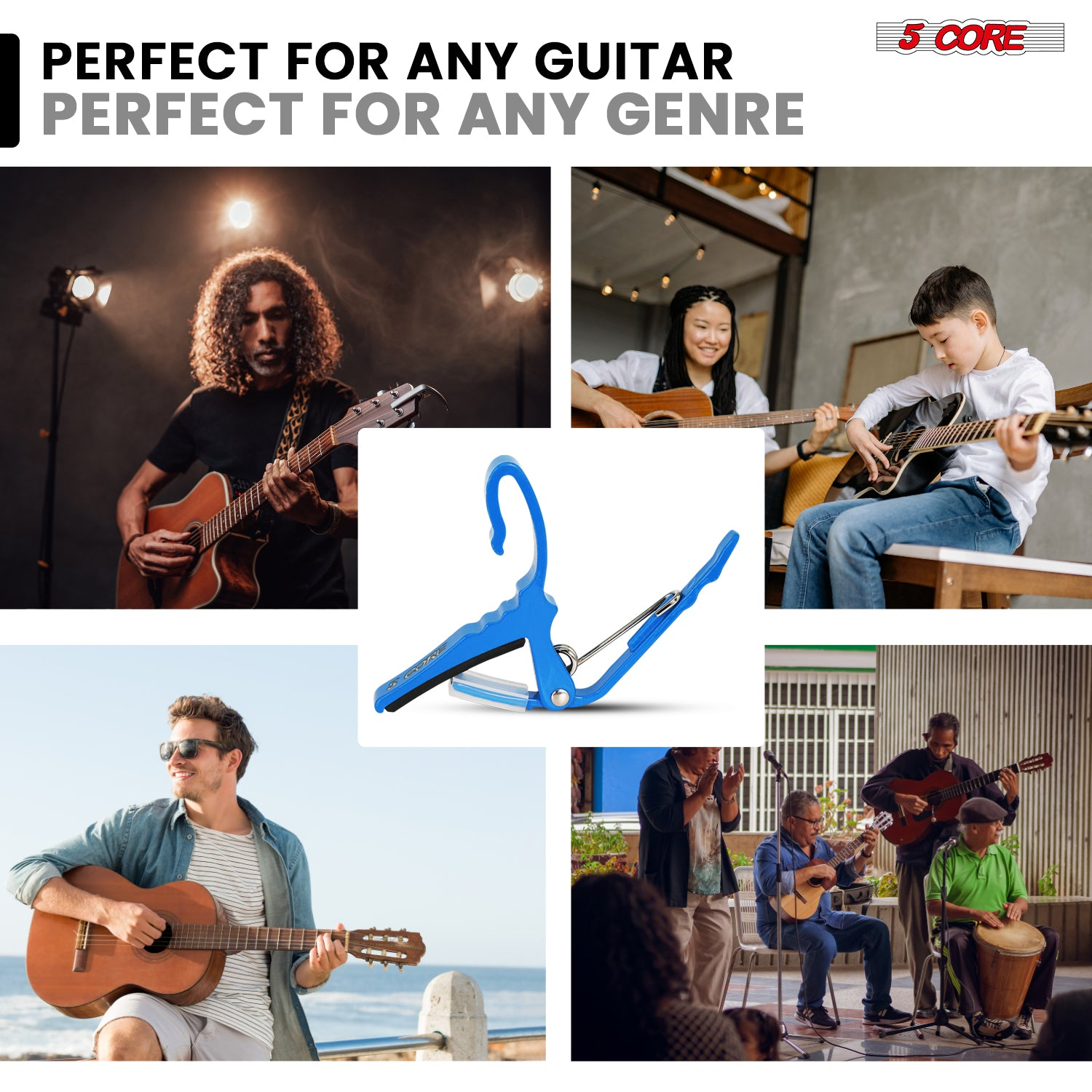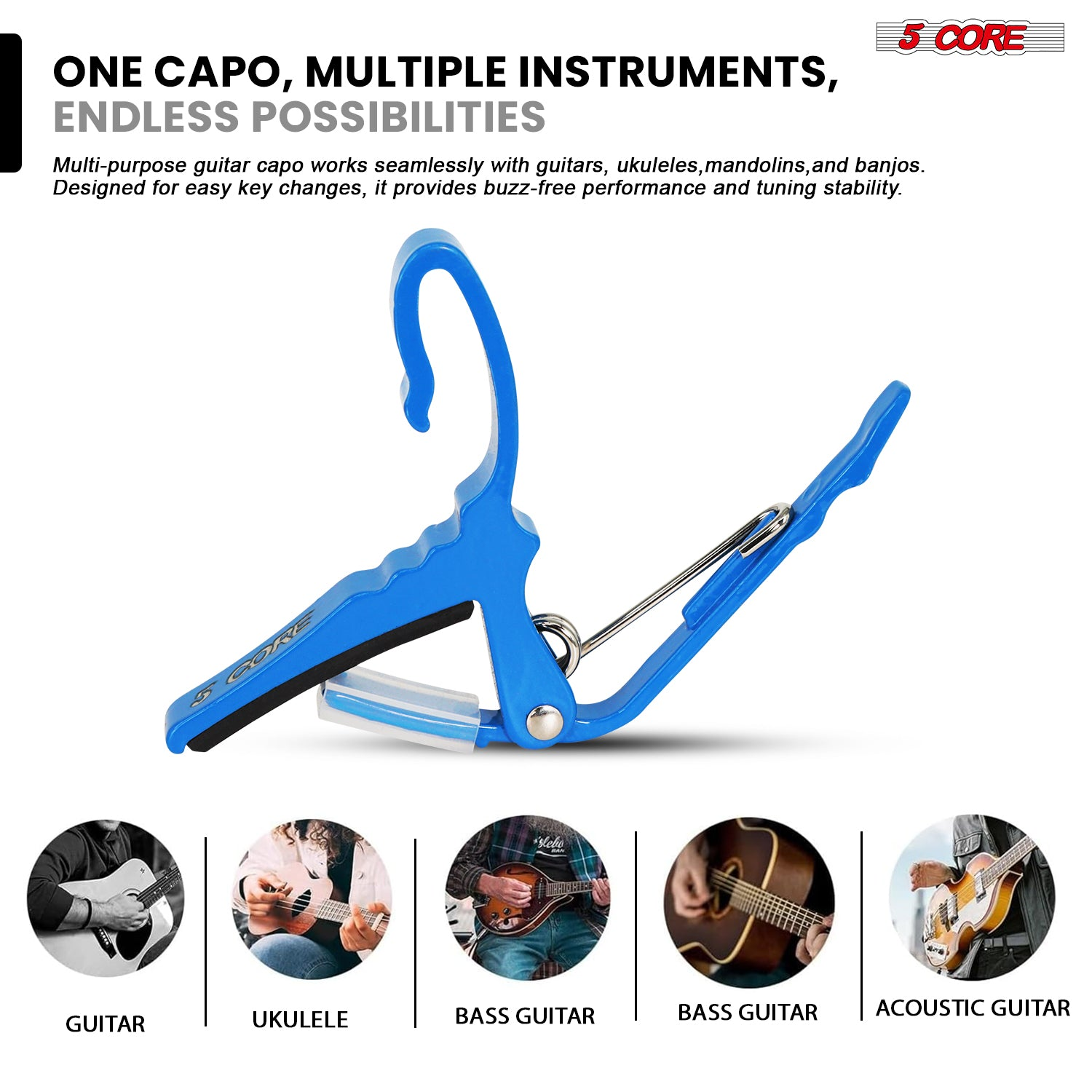 5Core Capo Acoustic Electric Guitar String Clip + 6Pcs Guitar Picks Celluloid + Carry Bag