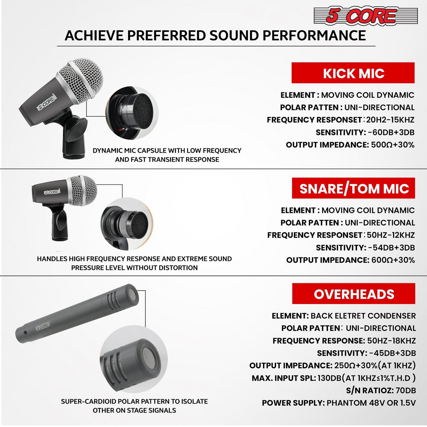 【High Performance】Each mic is engineered to capture everything from low-end punch to sensitive, flat sound.