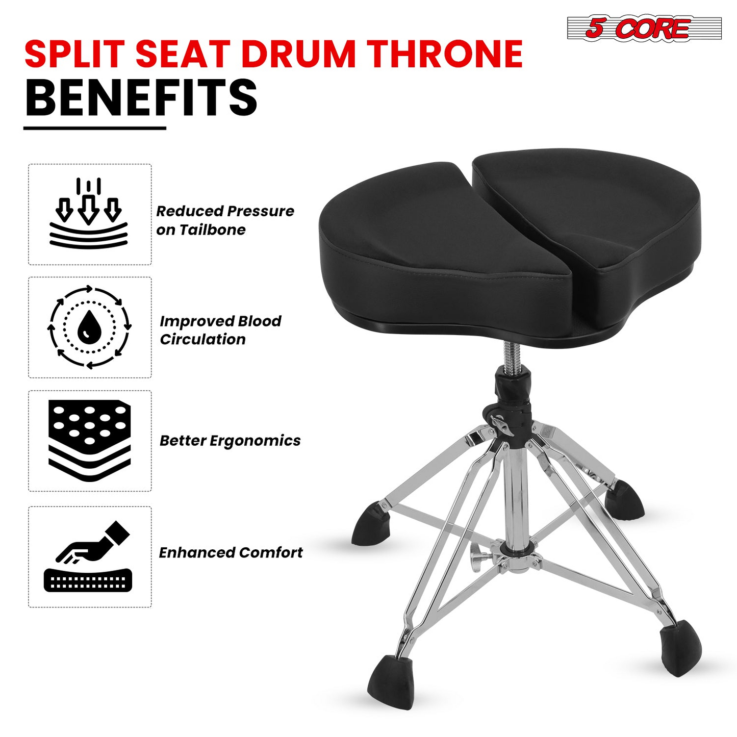 5Core Drum Throne Sponge Padded Guitar Stool Drummer Seat for Adults & Kids