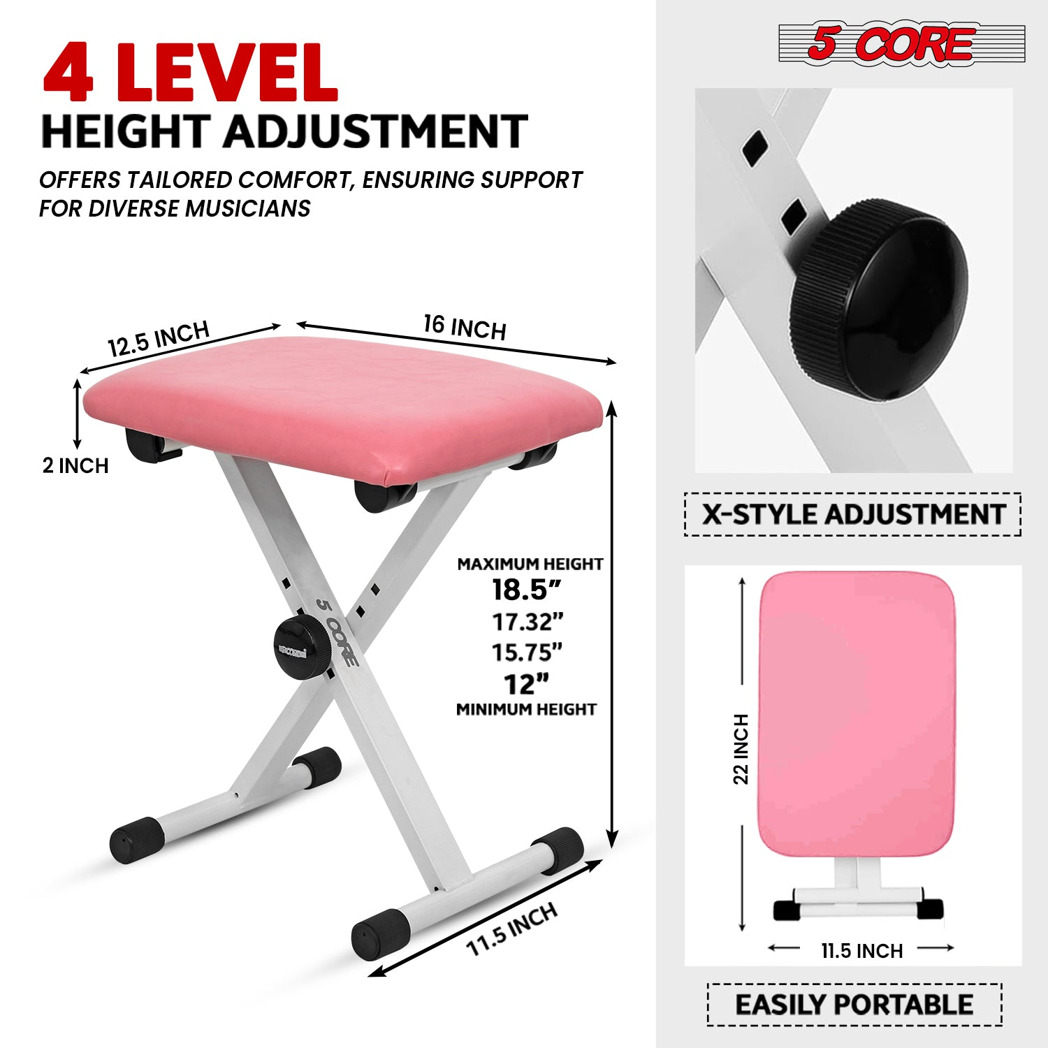 5Core Keyboard Stand Adjustable z Style Piano Riser + Keyboard Piano Bench PINK