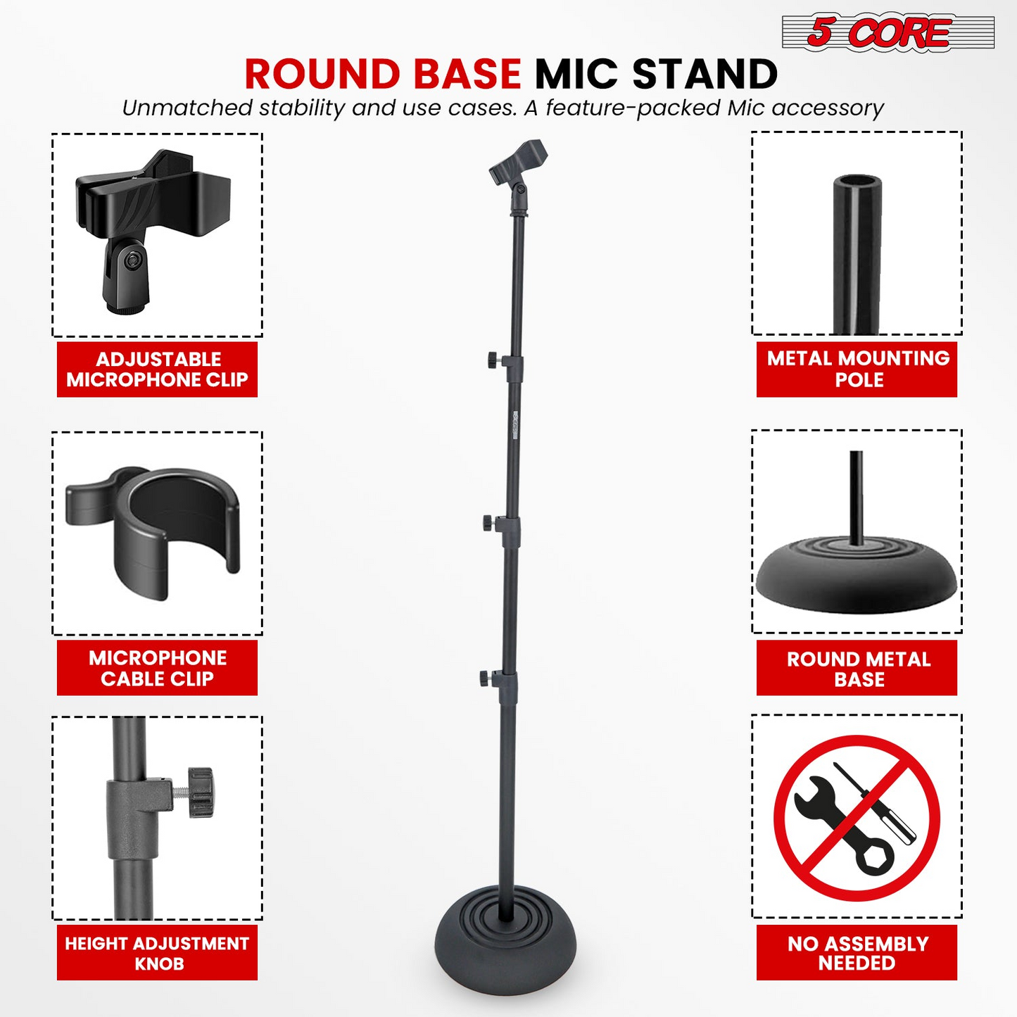 5Core Mic Stand Pair Floor Adjustable Universal Heavy Duty Microphone Stands Round Base Soporte De micrófono