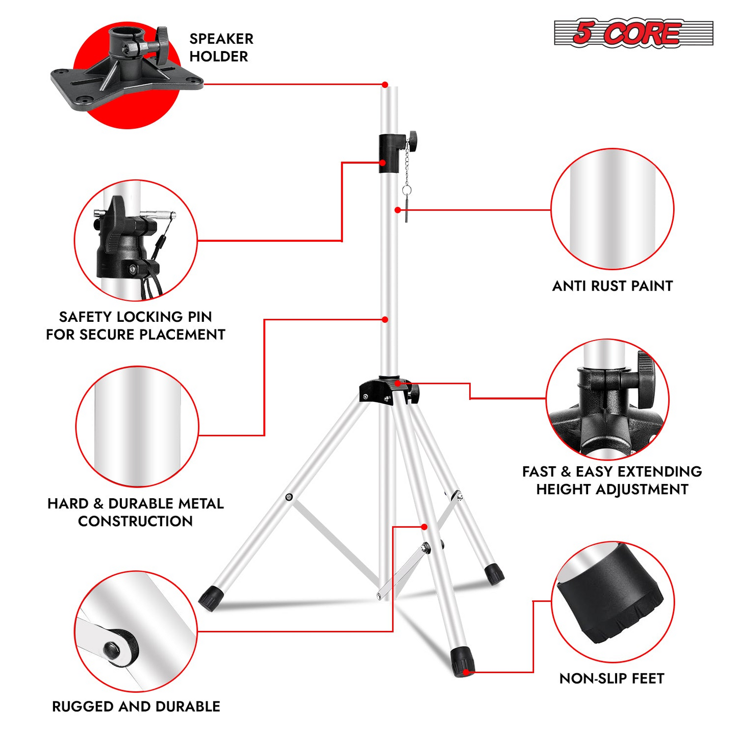 5Core Speaker Stand Tripod 2Pcs Tall Adjustable 72 Inch DJ Studio Monitor Stands Pole Mount