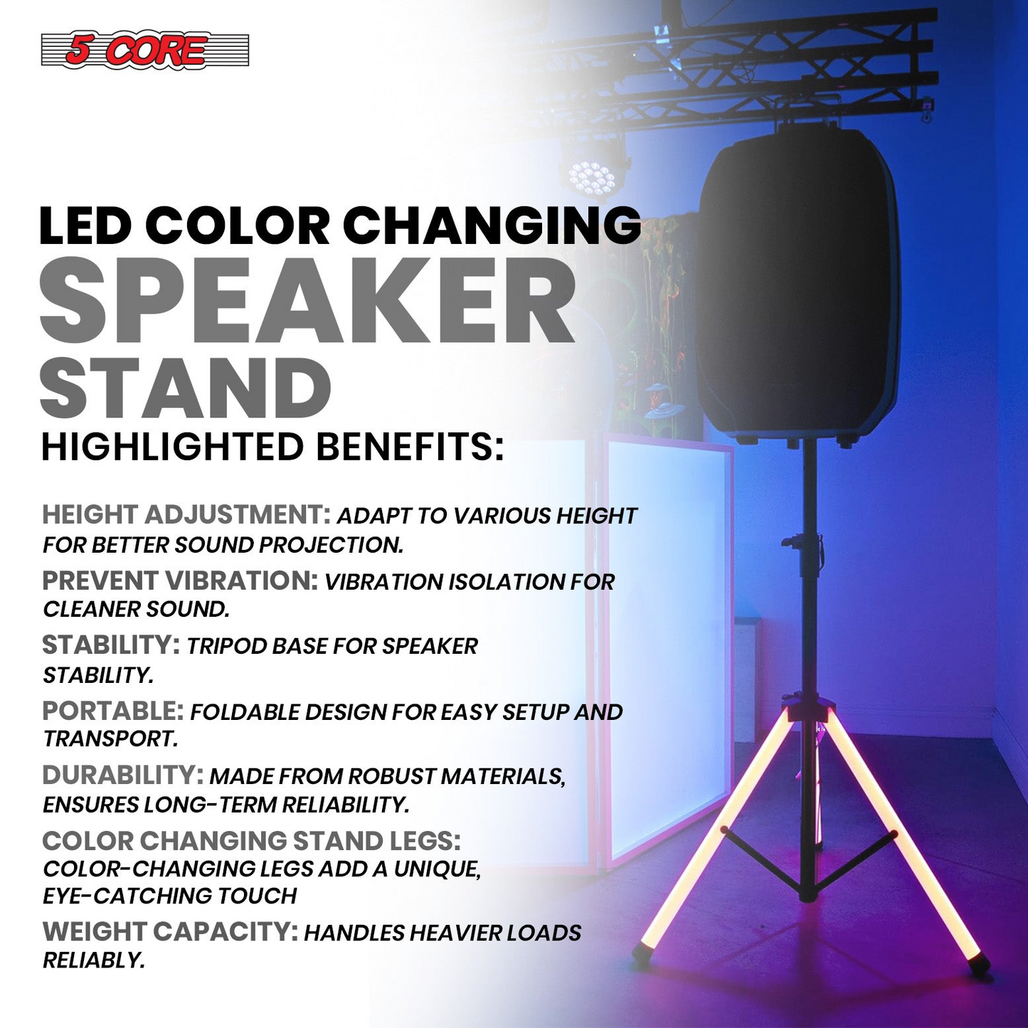 5Core Speaker Stand Tripod w RGB Lights Adjustable 72 Inch DJ Studio Monitor Stands