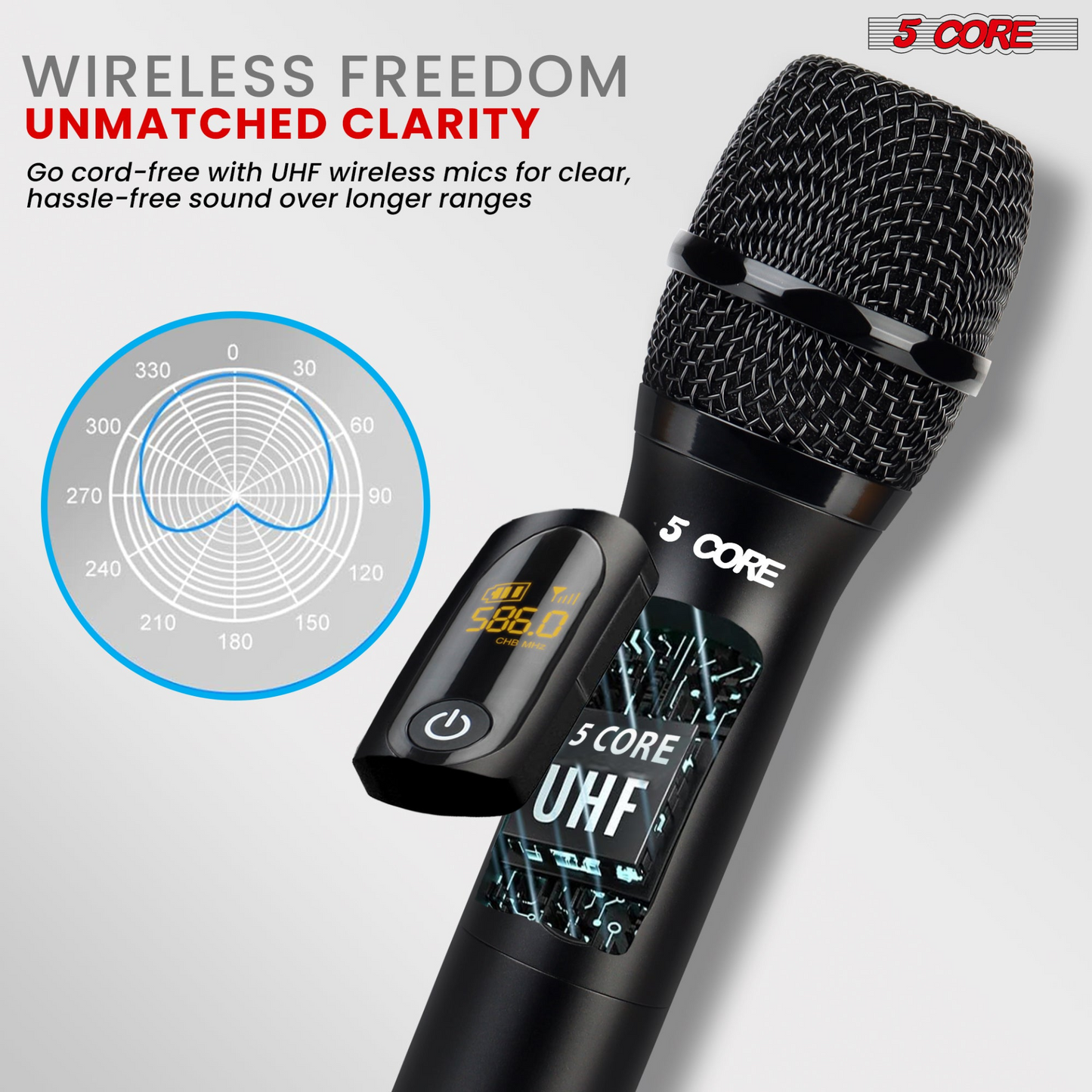 5Core Wireless Microphone Pair UHF Handheld Microfonos Inalambricos Cordless Mic RED + BLACK
