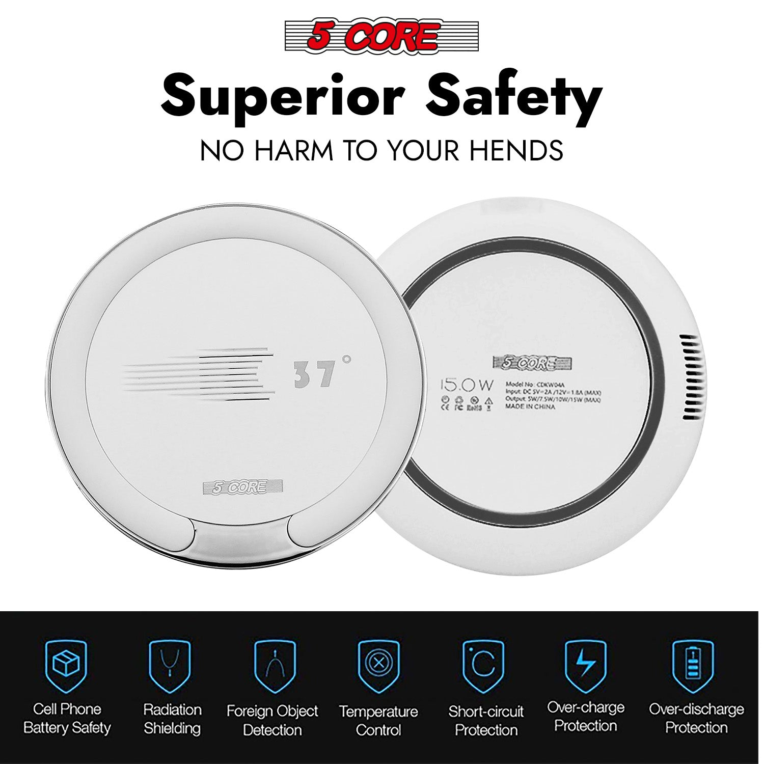 5Core Wireless Phone Charging Pad 15W Qi-Certified Fast Charger Mat Cargador