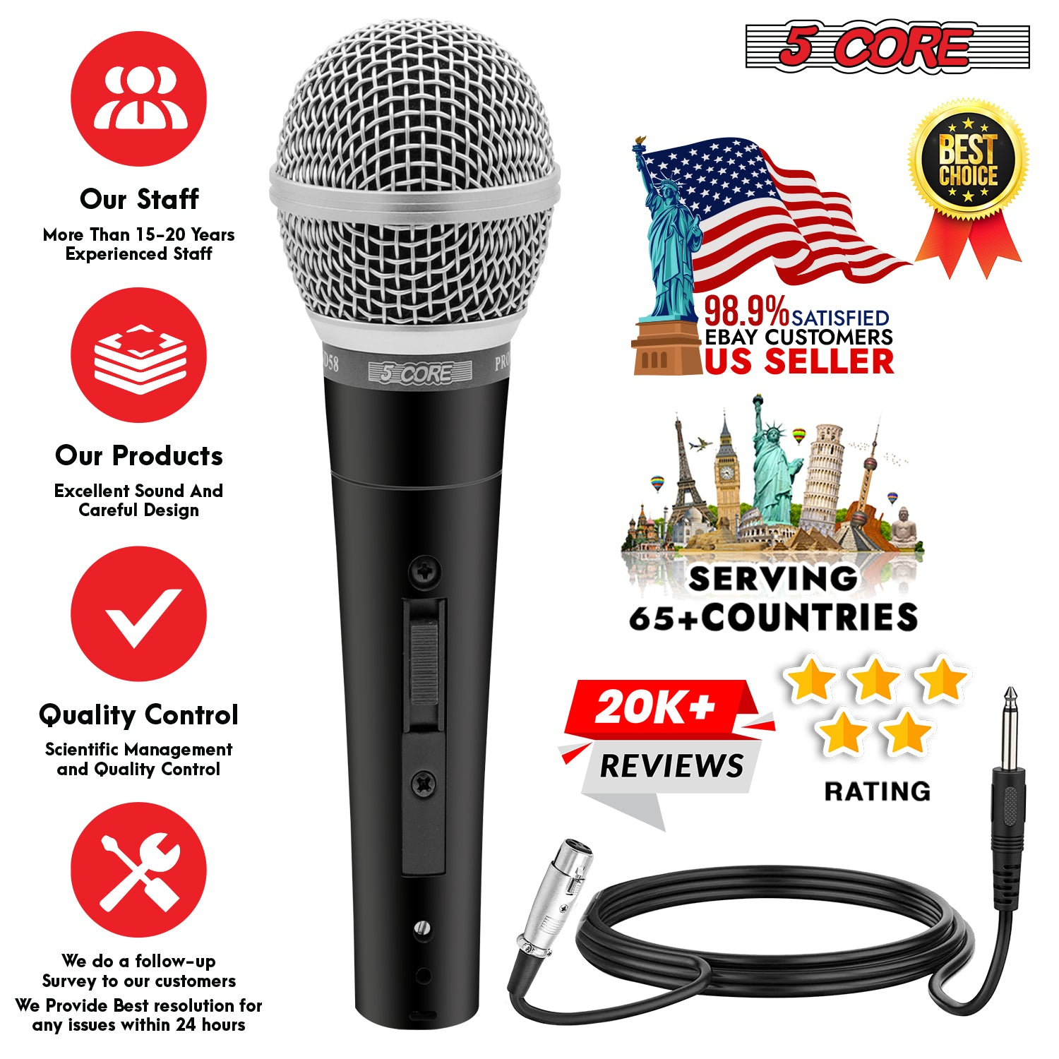The versatile XLR mic is perfect for karaoke, singing, podcasting, Live Performances, Recording Studios, Public Speaking, and more. |