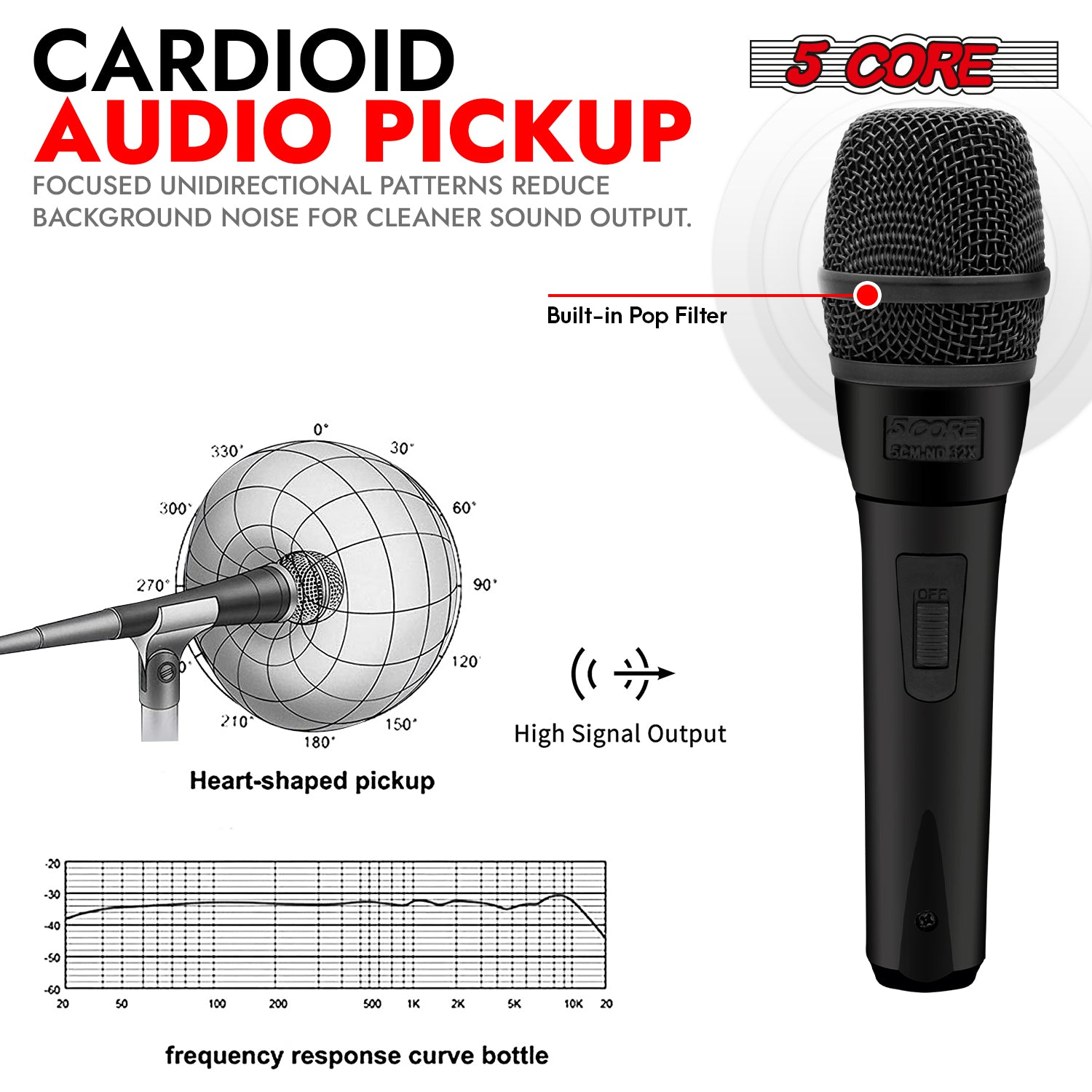 5Core XLR Microphone Dynamic Mic Karaoke Singing Studio Microfono Handheld Mics