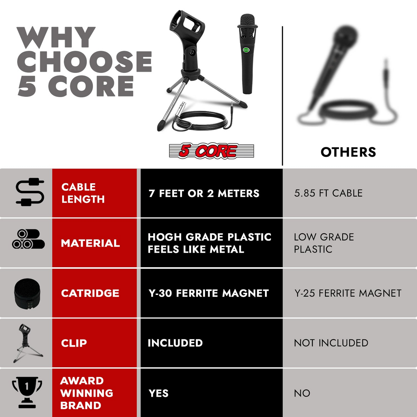 5Core XLR Microphone Dynamic Mic Karaoke Singing Studio Mics Handheld Microfono