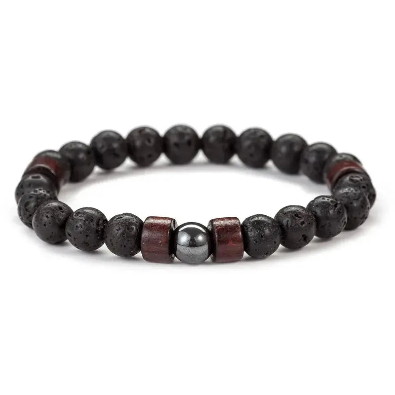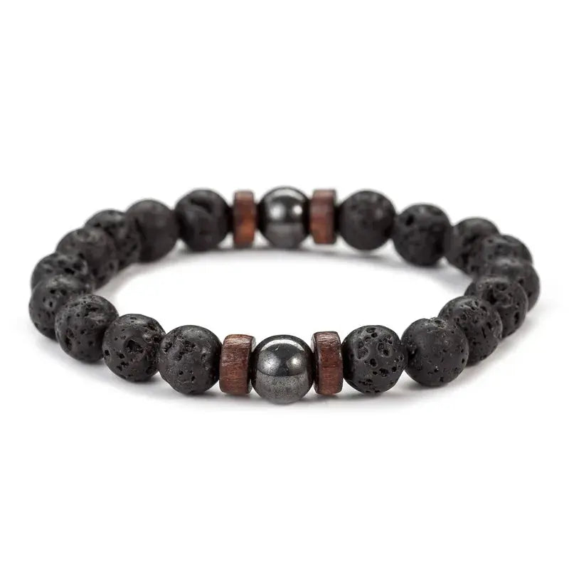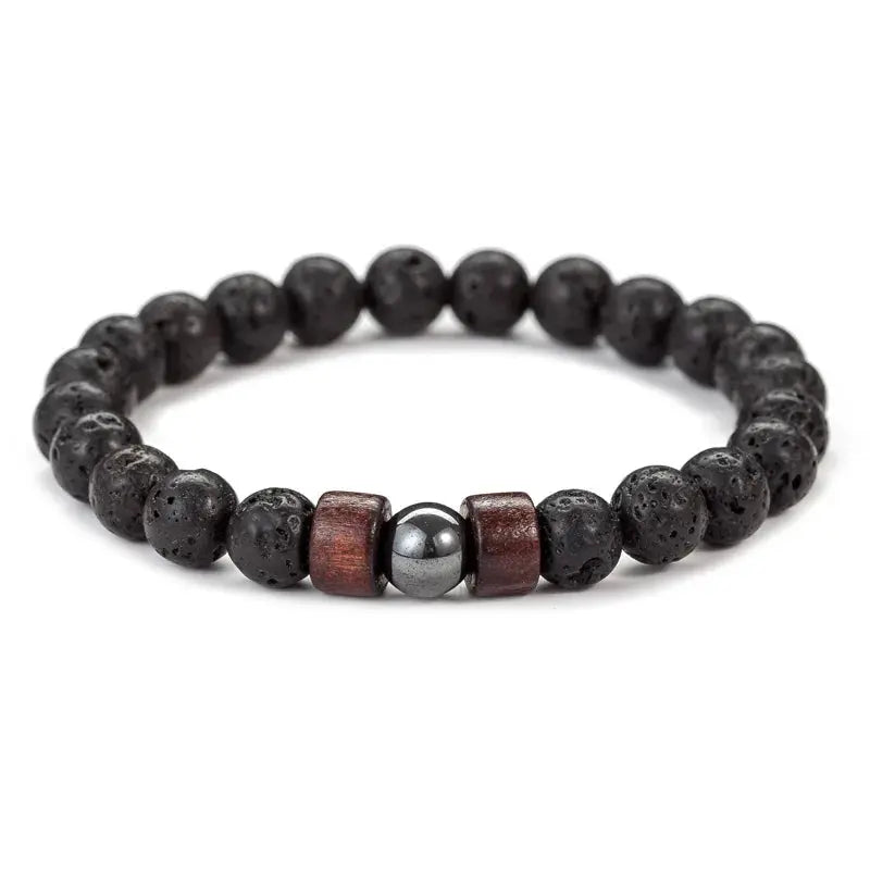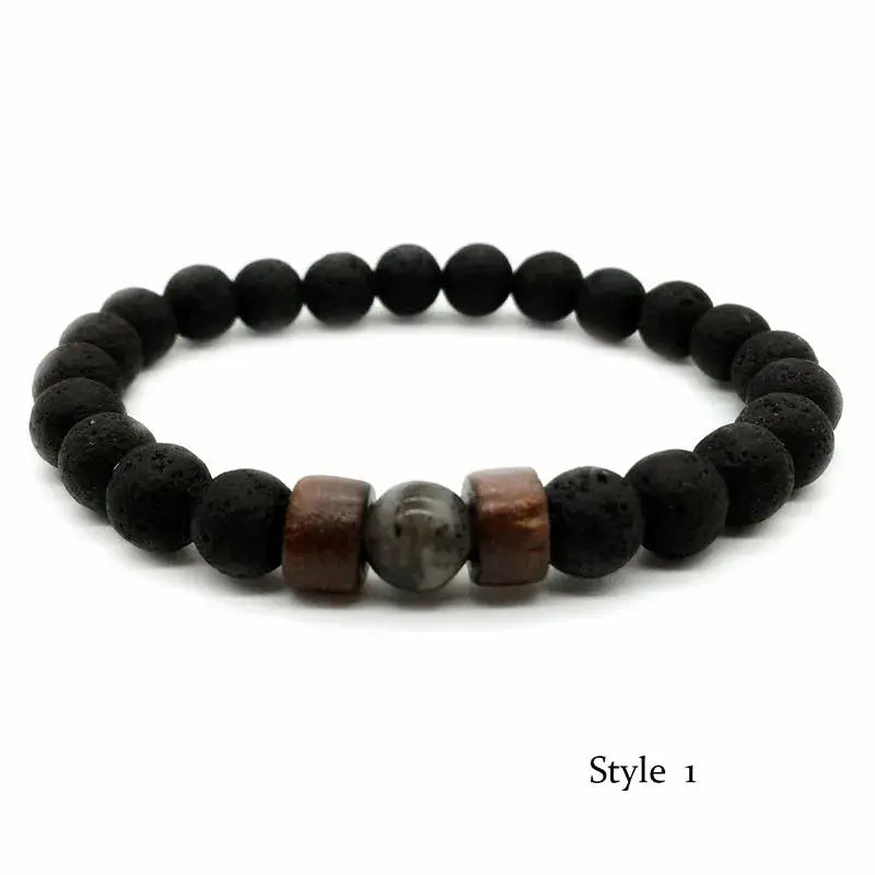 8mm Volcanic Stone Bracelet for Men Lava Wooden Beads Bracelet Tibetan Buddha Male Wrist Chain Jewelry Handmade Elastic Bracelet