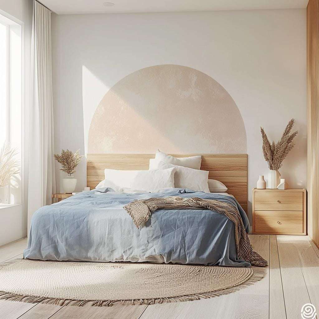 Elevate your bedroom with our **Boho Headboard Decal**—a minimalist half-circle wall sticker in soothing pastel beige or peach tones. Placed behind your bed, it serves as a stylish headboard accent that creates a subtle focal point, blending seamlessly with your existing decor. The semi-circle design brings a calming, organic feel to your space, enhancing the atmosphere with its simplicity and warm color palette.
