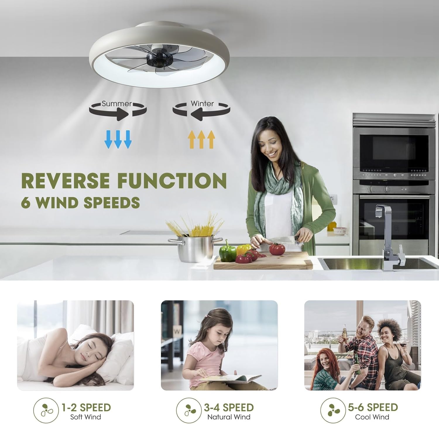 Ceiling Fans with Lights and Remote, 20'' Low Profile Flush Mount Ceiling Fan with Lights, 6 Wind Speeds, Modern Dimmable LED Ceiling Fan, Smart Ceiling Fan for Bedroom, Kids Room (White)