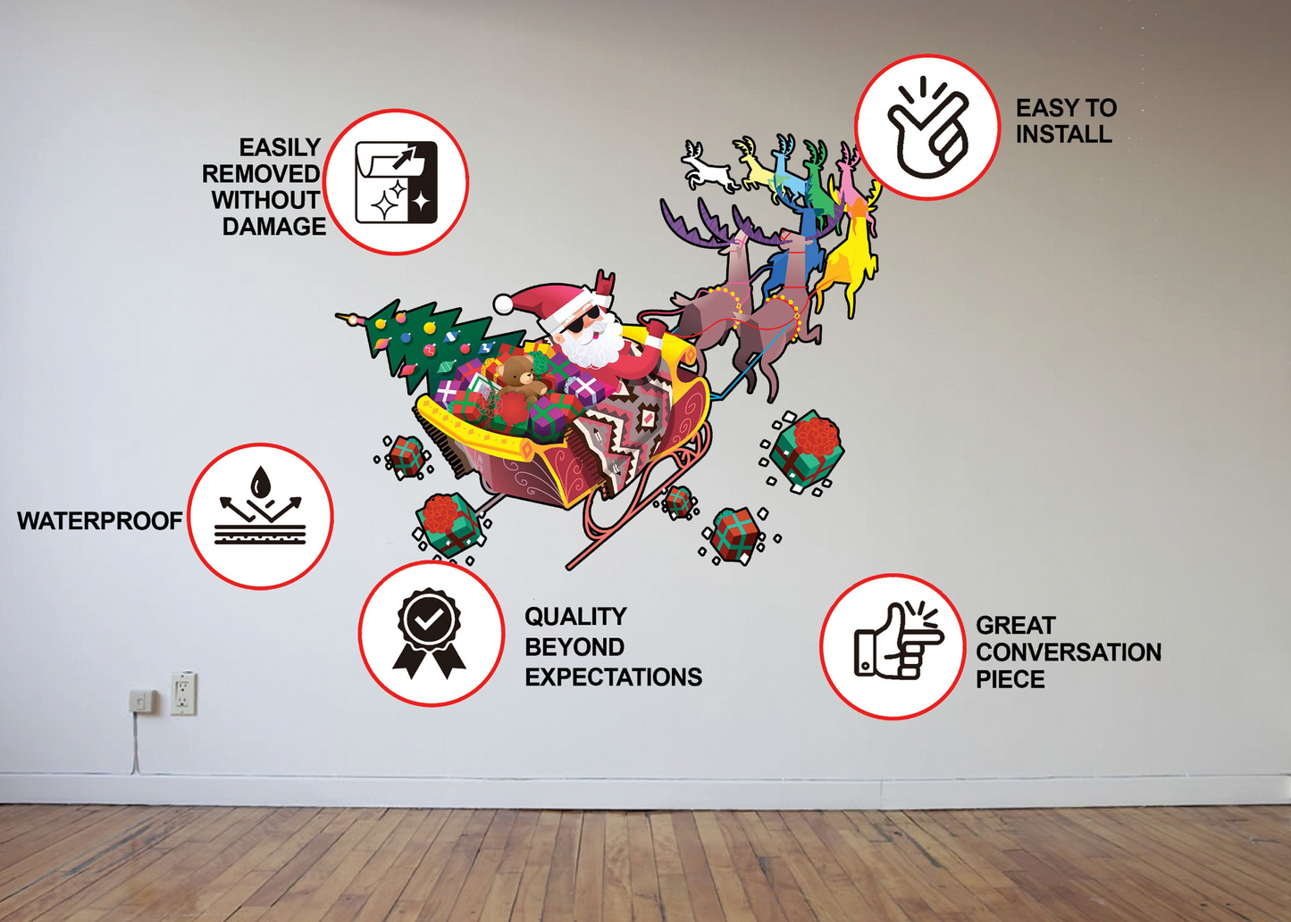 Invest in this Colorful, Humorous Santa in Glasses & Sleigh Wall Decal and let the fun, quirky spirit of Santa fill your home with laughter and joy, ensuring a merry, light-hearted celebration throughout the festive season!