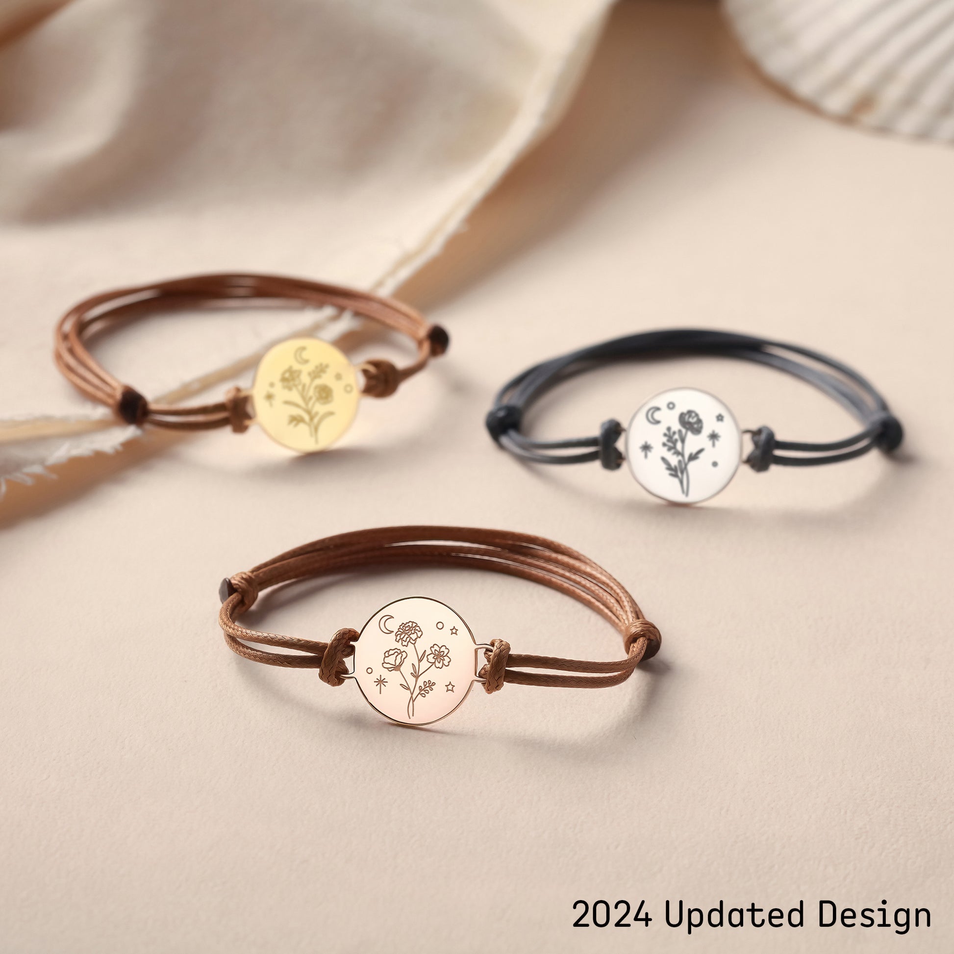 Personalize this leather bracelet with the birth month flower on the front and your own short meaningful message on the back. It's the perfect gift for for mom on Mother's Day, Chrsitmas or any special occasions.