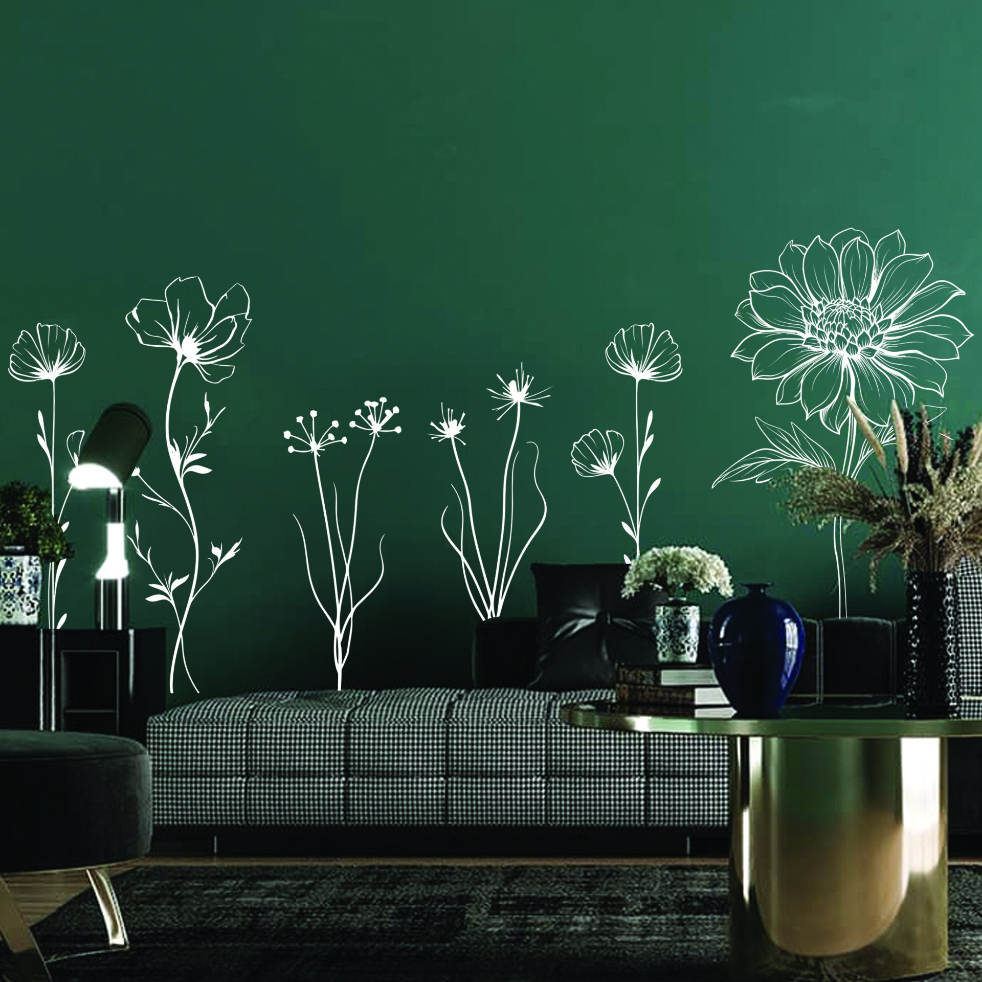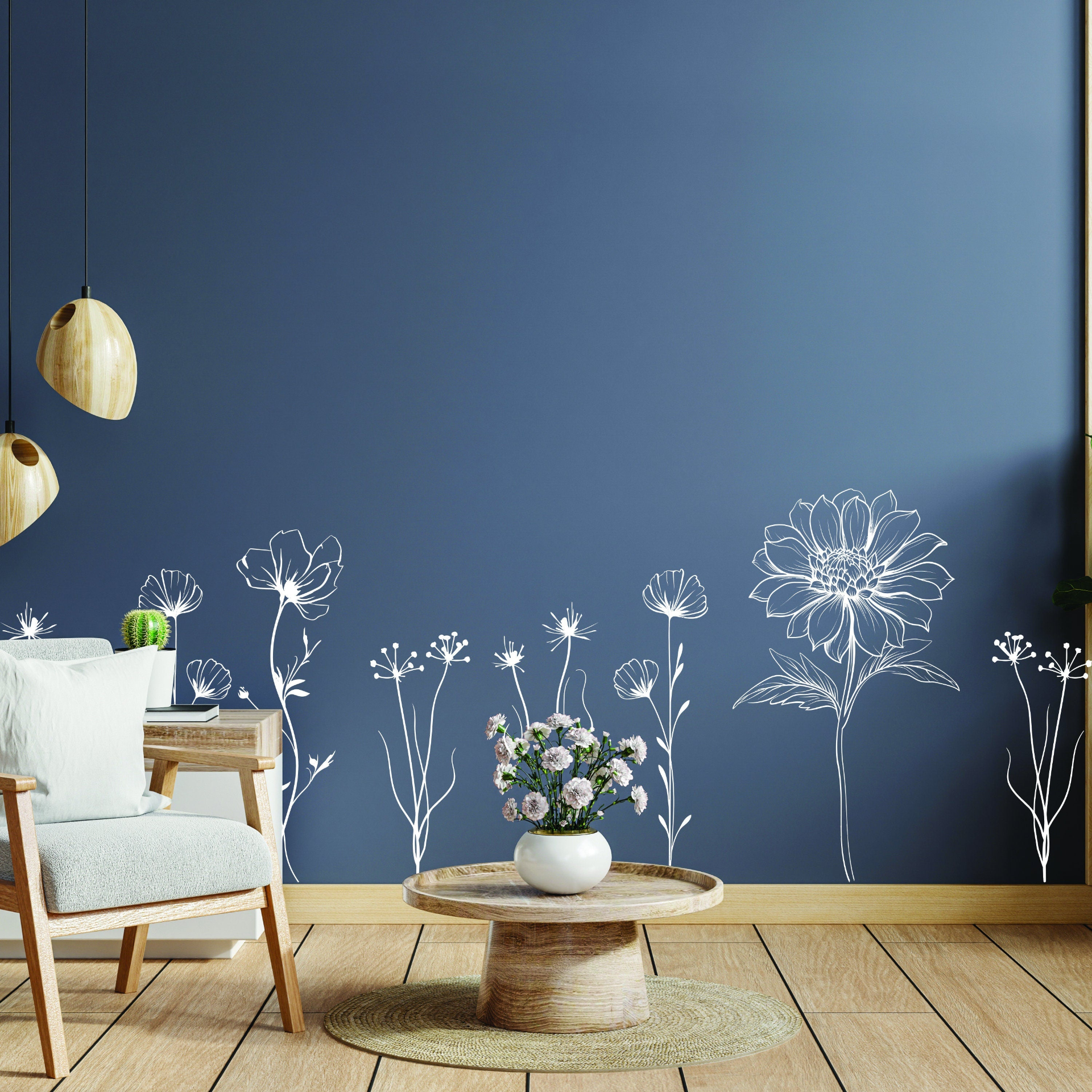 Exquisite Hand-Sketched British Wildflower Wall Stickers - Elegant Vinyl Floral Decals