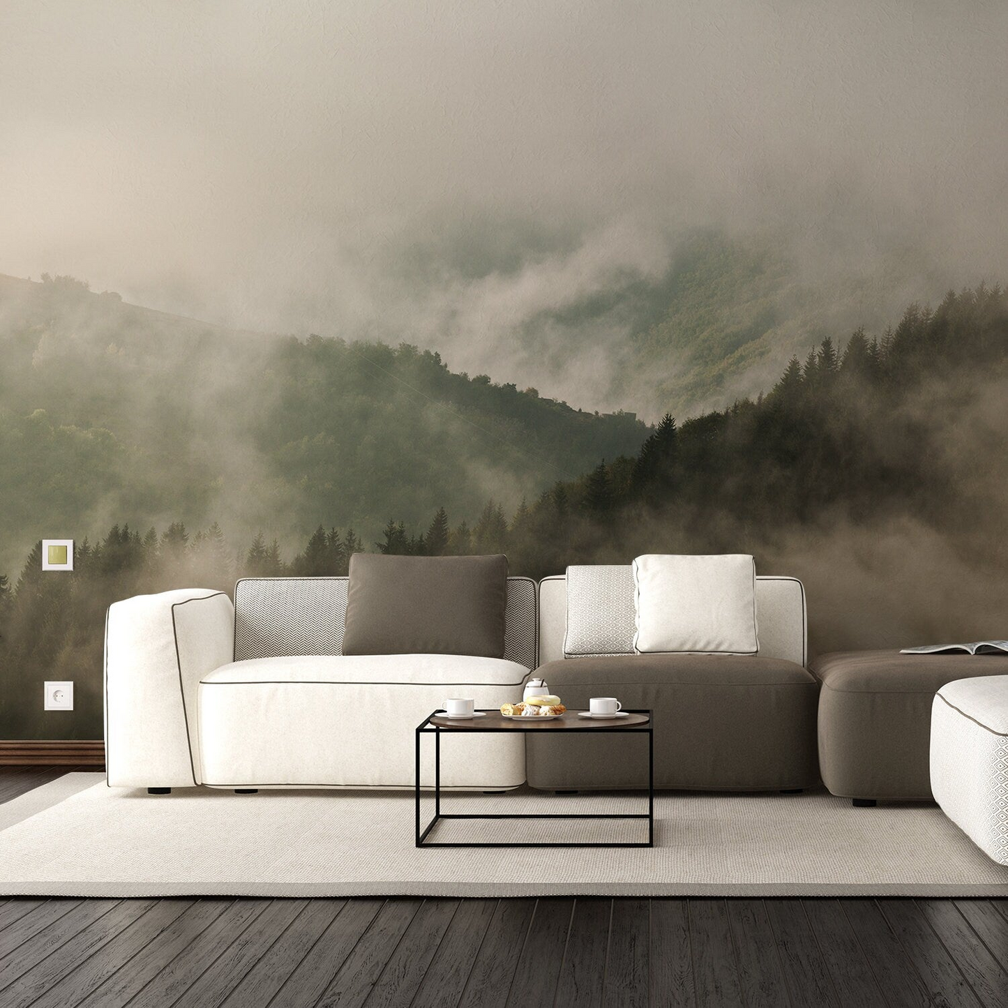 Foggy Forest Wallpaper Sticker Mural - Mountain Tree Fog Removable Wall Paper Art Decal