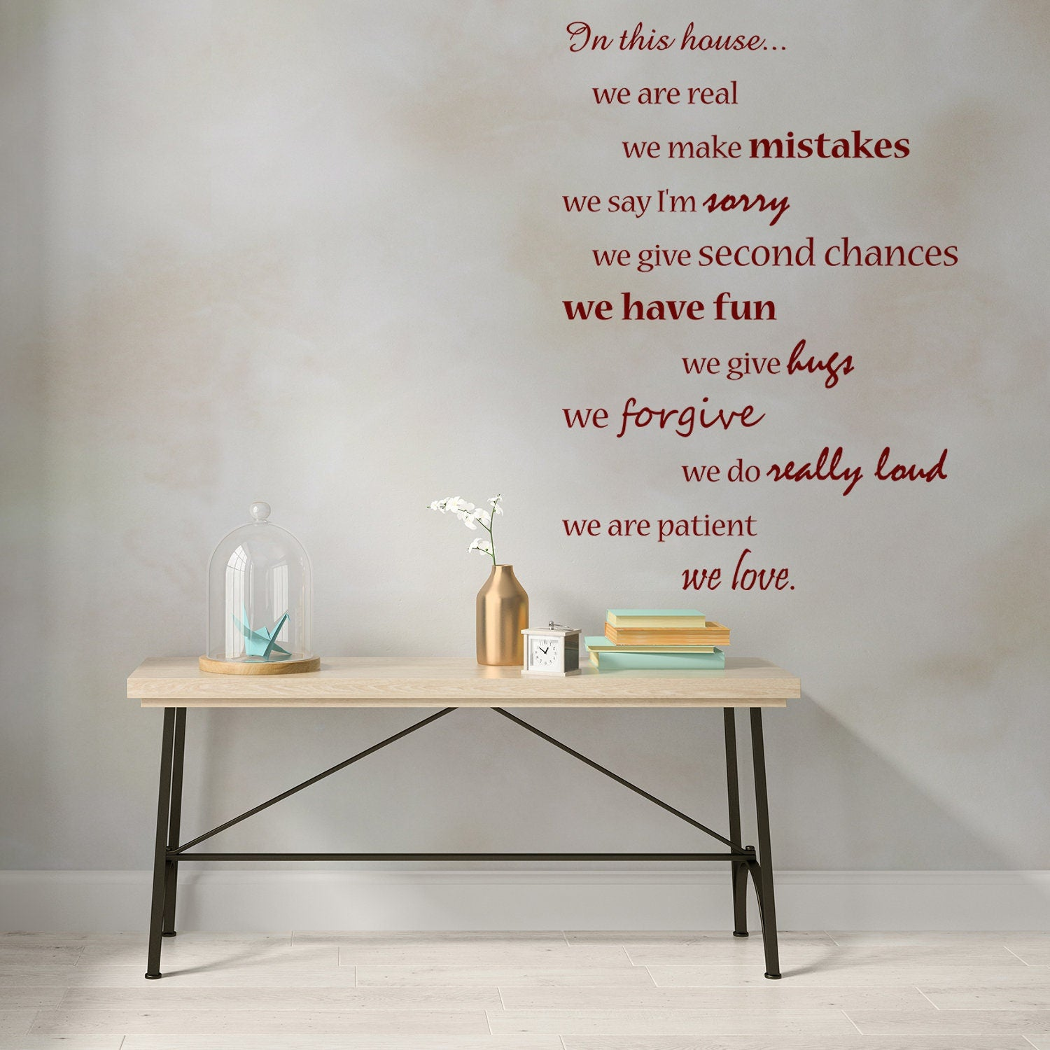 The House Wall Quote Sticker - In This House Decal Art Family Rules Quotes is a unique and eye-catching addition to any home. This high-quality decal features a beautiful design with inspiring family rules quotes that will add a touch of warmth and positivity to your living space.