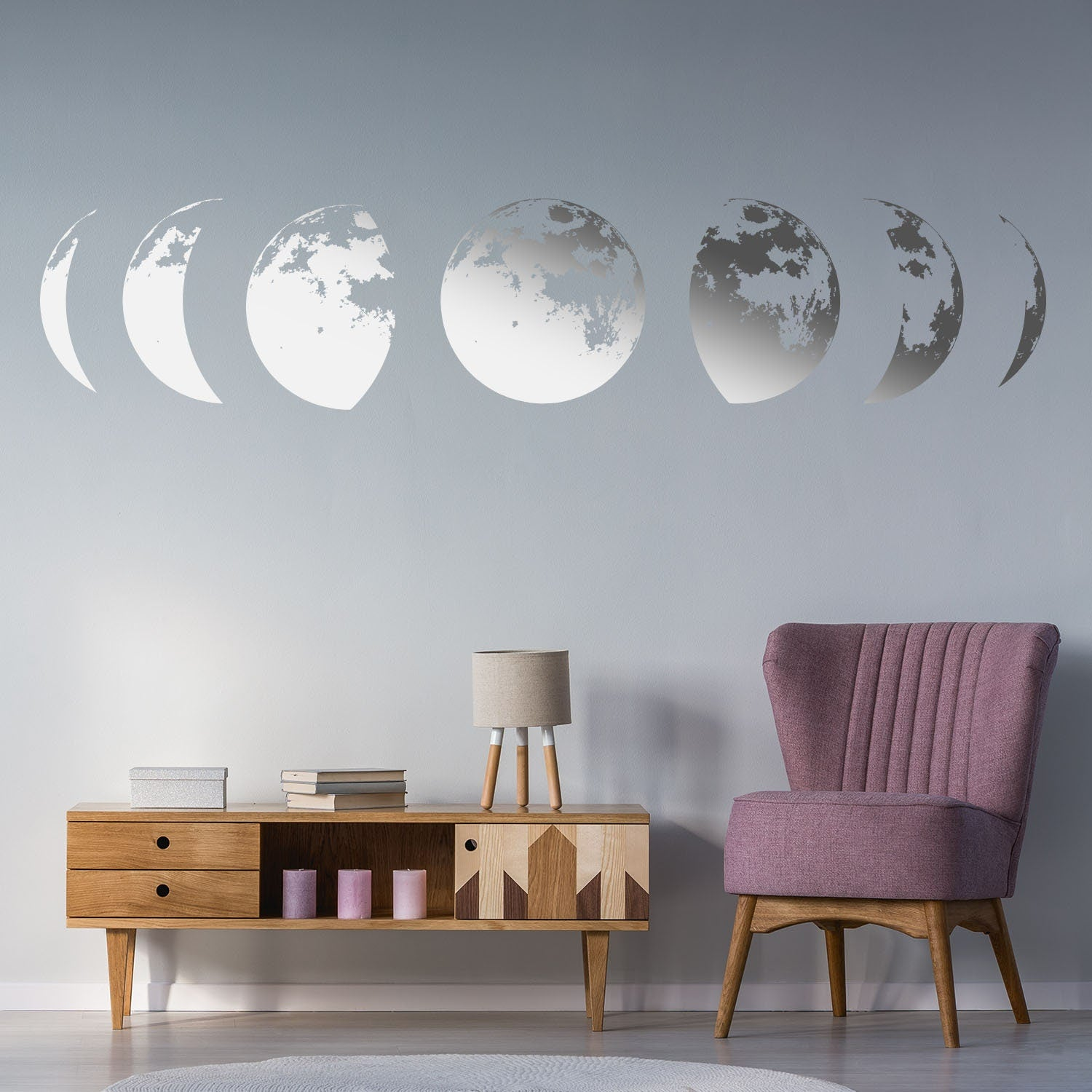Don't settle for ordinary wall decor, add a touch of celestial beauty with the Moon Phases Wall Decor Decal. Its uniqueness and elegance will surely make it a conversation starter and a focal point in any room. Get yours today and transform your space into a stunning work of art.