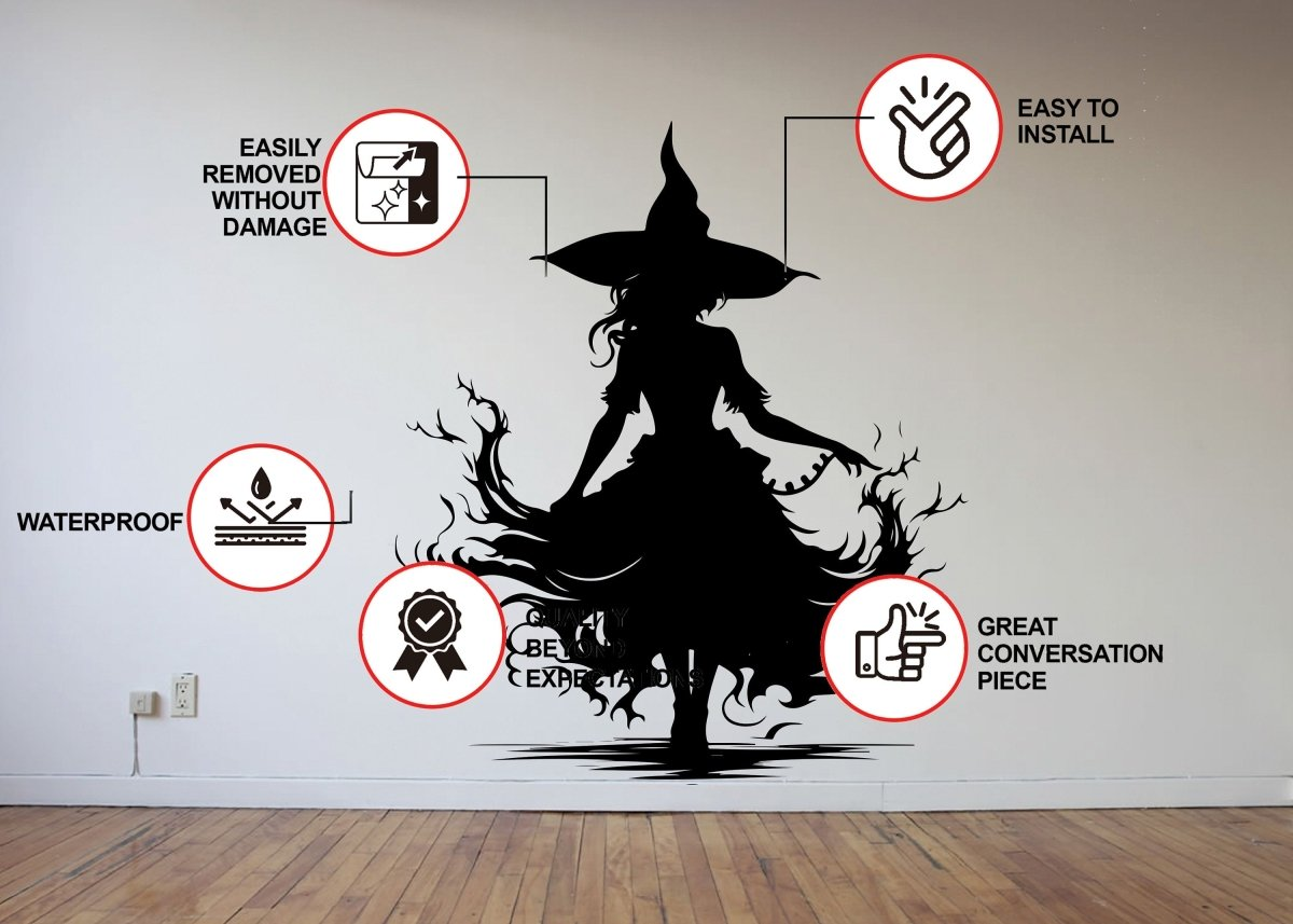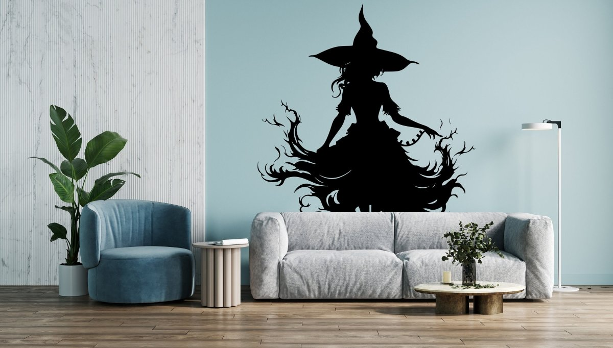 Mystical Sorceress Window Art Decal - Enchanting Halloween Wall Decoration