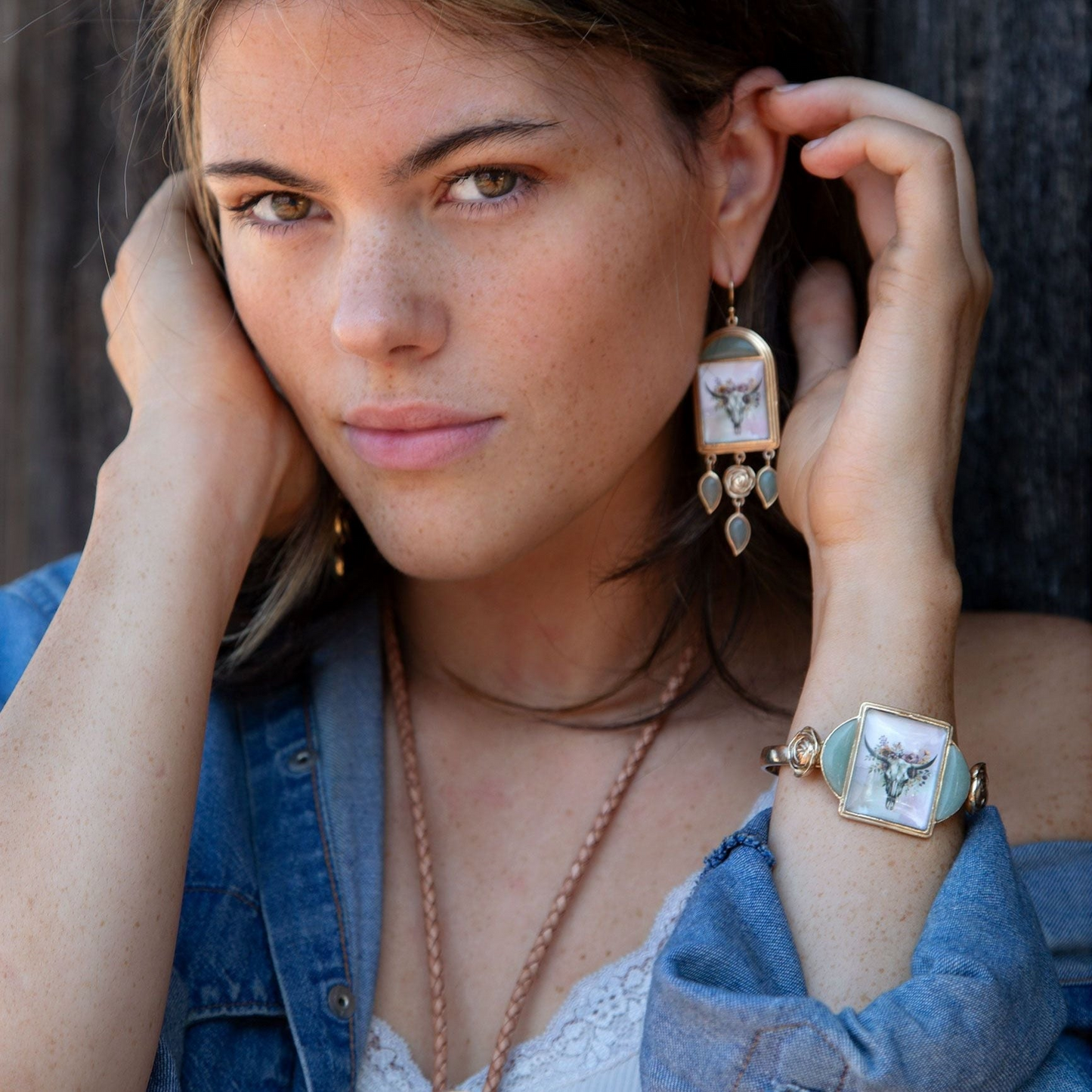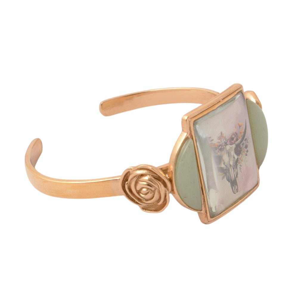 Steer Skull Green Aventurine Golden Cuff Bracelet