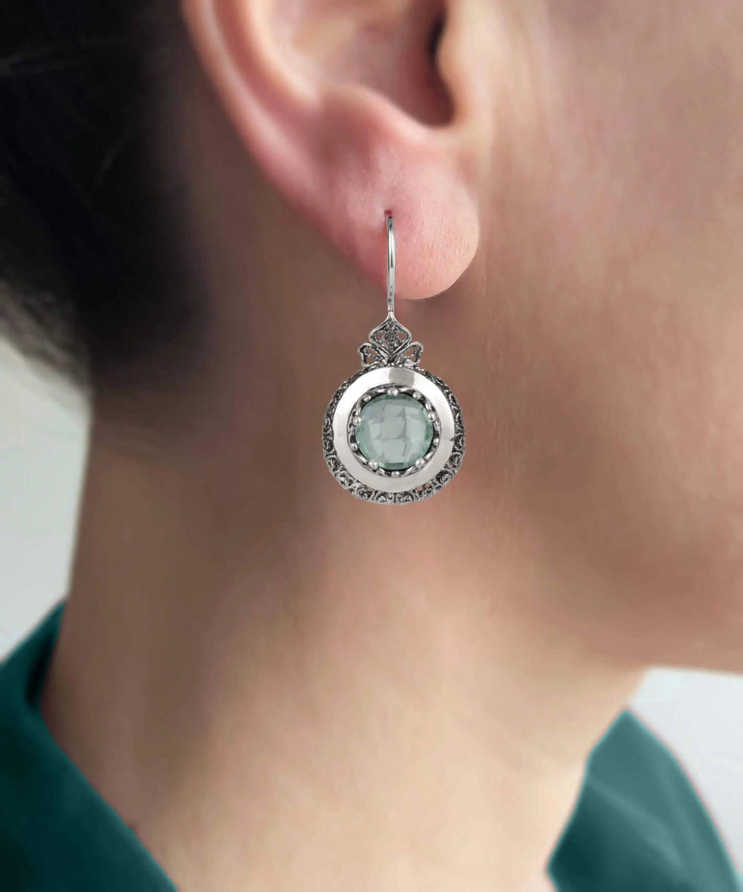 Elevate your style with these exquisite filigree art drop earrings featuring a stunning aquamarine gemstone, the March birthstone. These earrings are made from high-quality 925 sterling silver and expertly oxidized and polished to achieve a unique and sophisticated appearance.