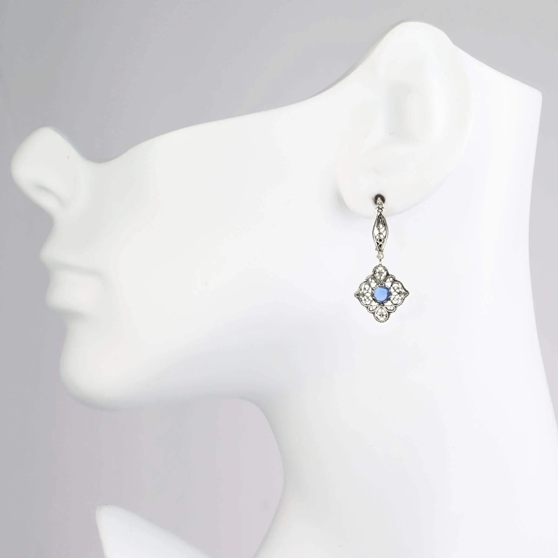 Sterling Silver Filigree Art Blue Quartz Gemstone Women Dangle Drop Earrings