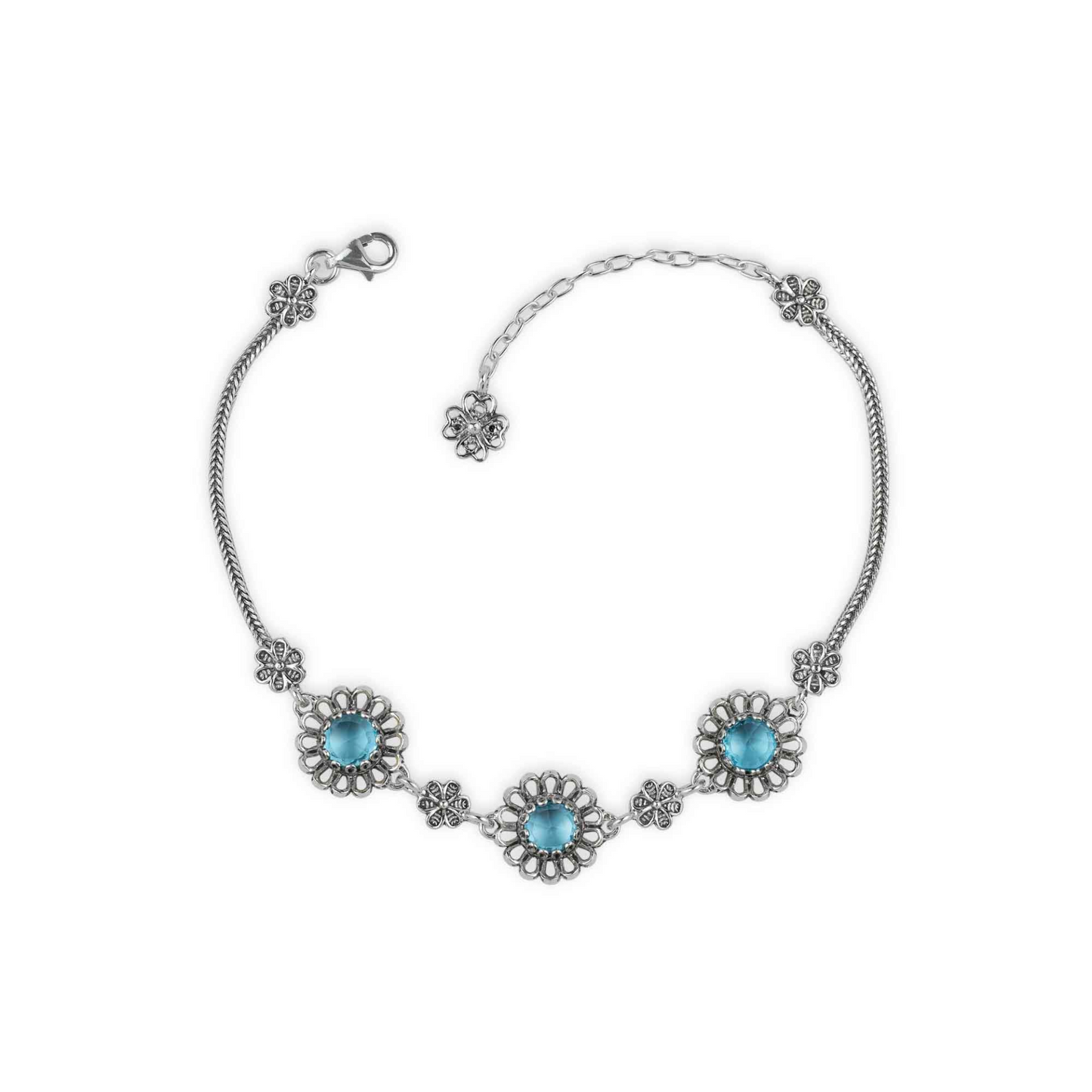 Sterling Silver Filigree Art Blue Topaz Gemstone Woman Link Bracelet