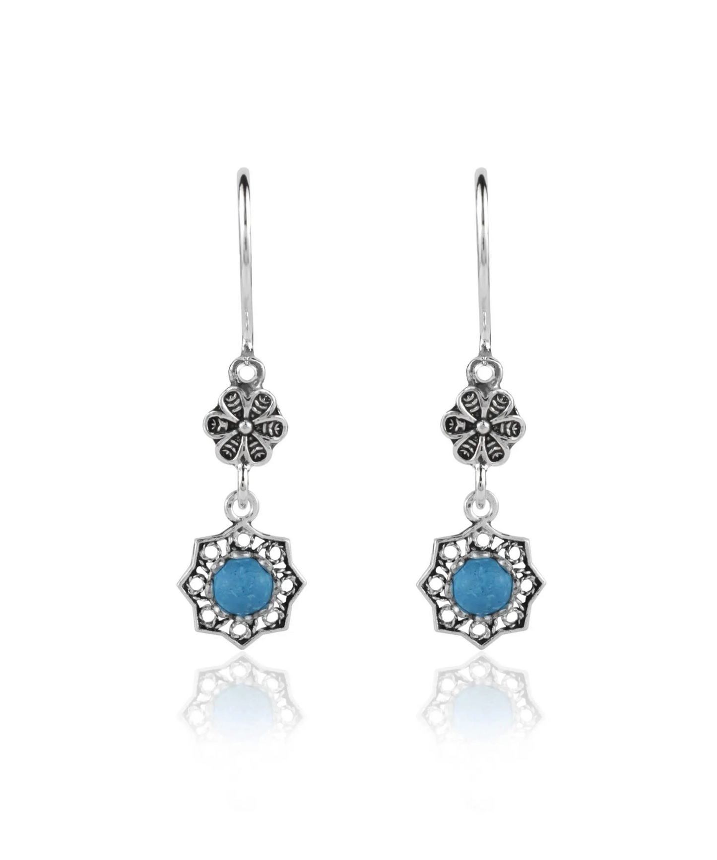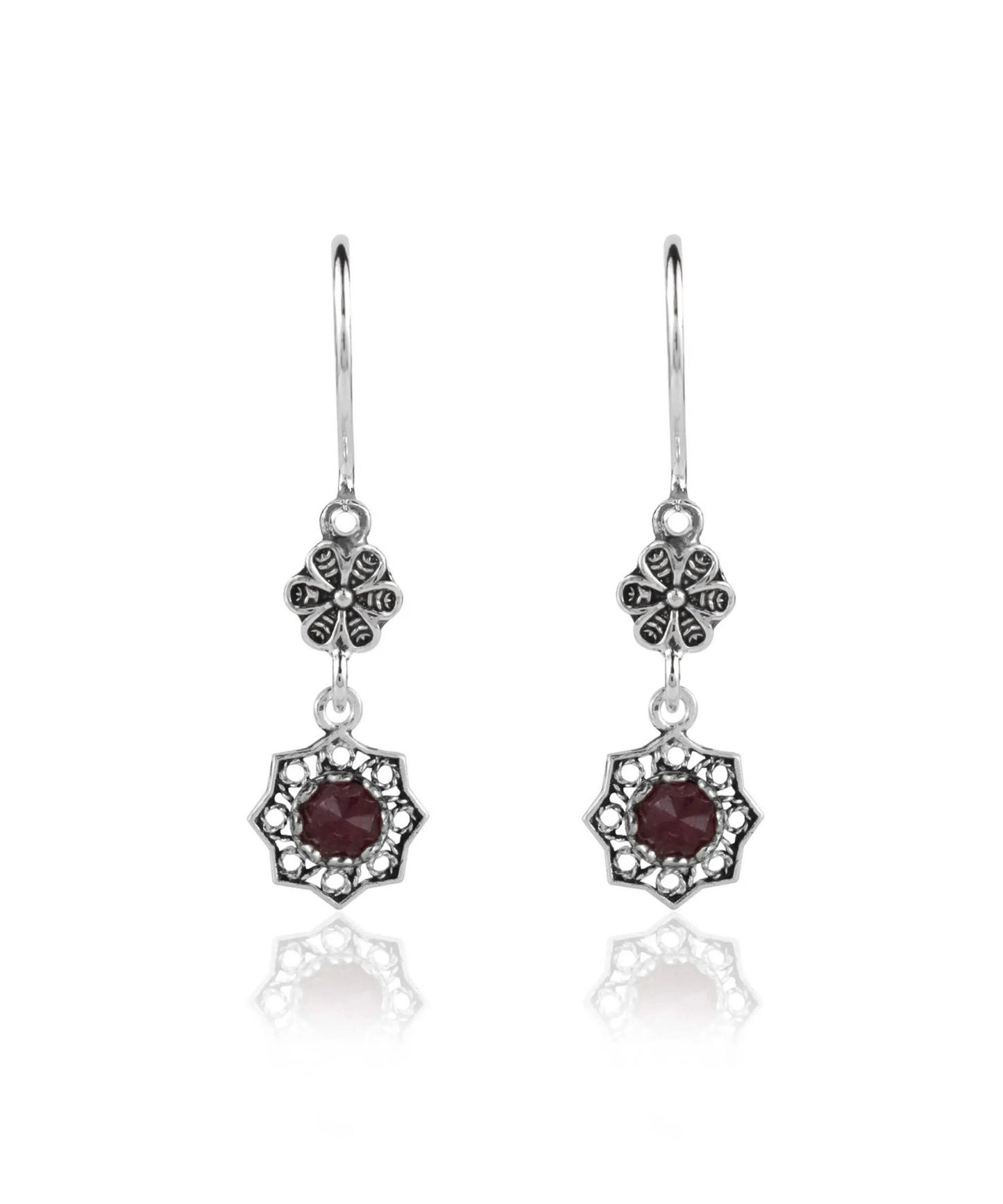 Sterling Silver Filigree Art Daisy Figured Gemstone Women Dangle Earrings
