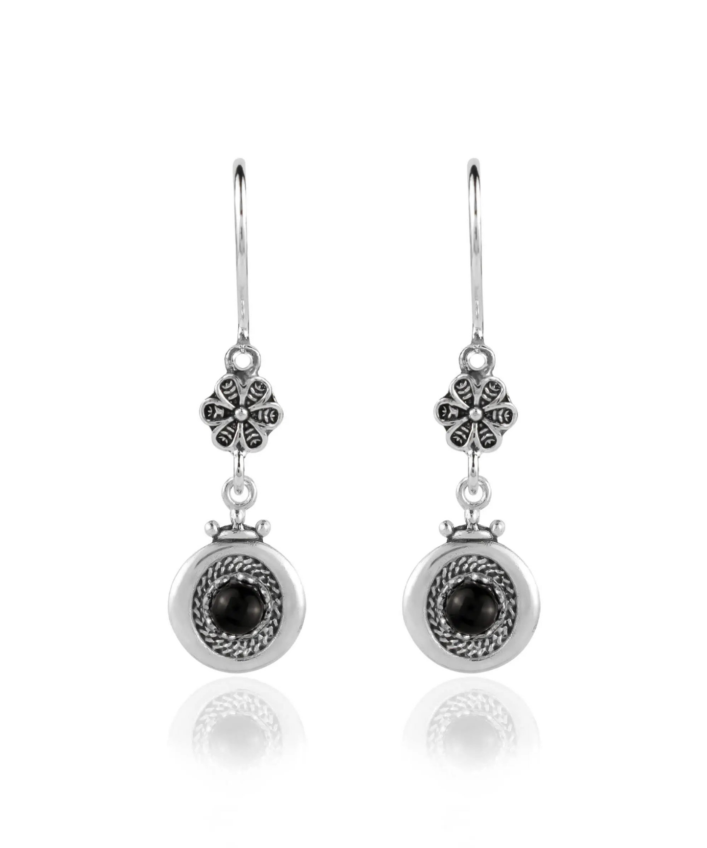 These earrings are handmade from high-quality 925 sterling silver and feature a beautiful design with cabochon cut gemstones in your choice of Carnelian, Black Onyx, Turquoise, Green Agate, or Ruby Corundum. The earrings are both oxidized and highly polished, giving them a unique, antique-inspired look that is both elegant and timeless.